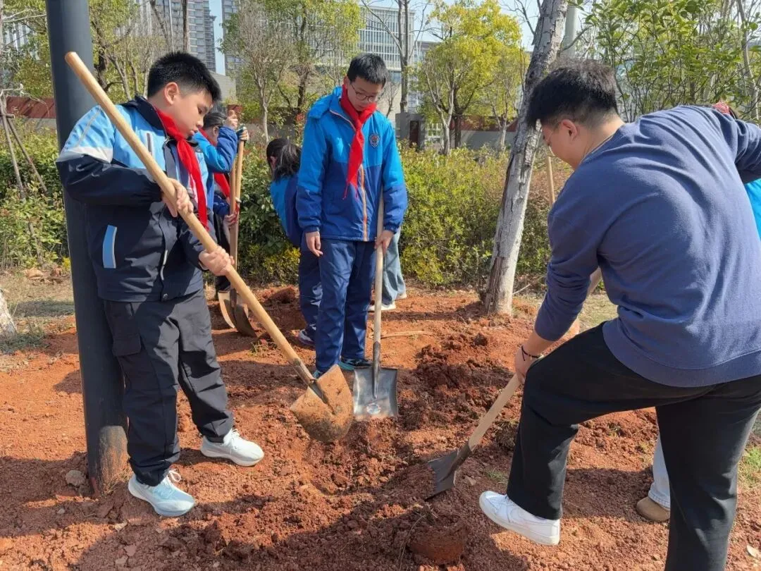 春意渐浓,绿意萌动。3月12日上午,南昌市红谷滩区腾龙学校举办的“携手添新绿 同心筑未来”植树节活动在校园内热烈开展!六年级的队员们和校领导、老师们共同挥锹培土,种下一棵棵承载希望的小树苗,为校园增添勃勃生机。