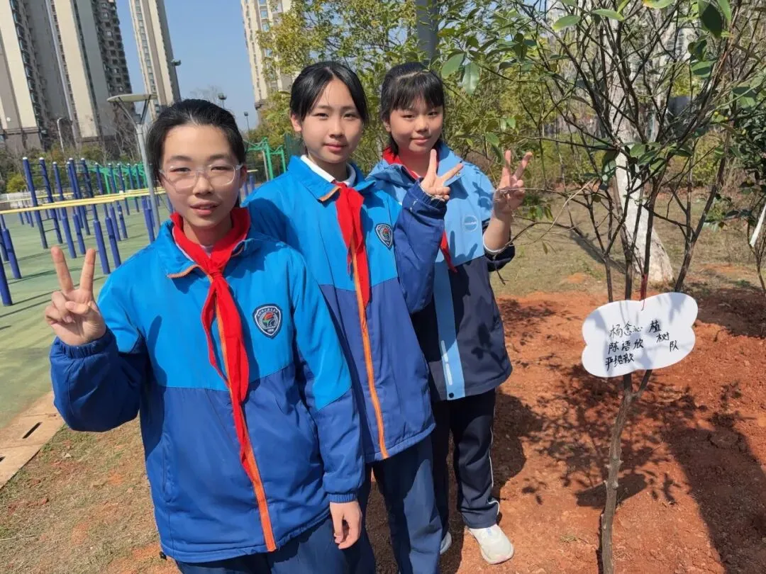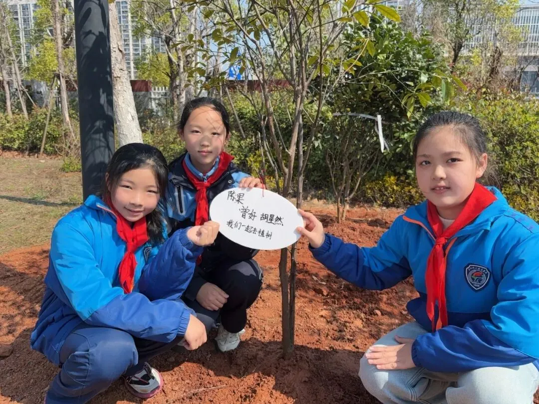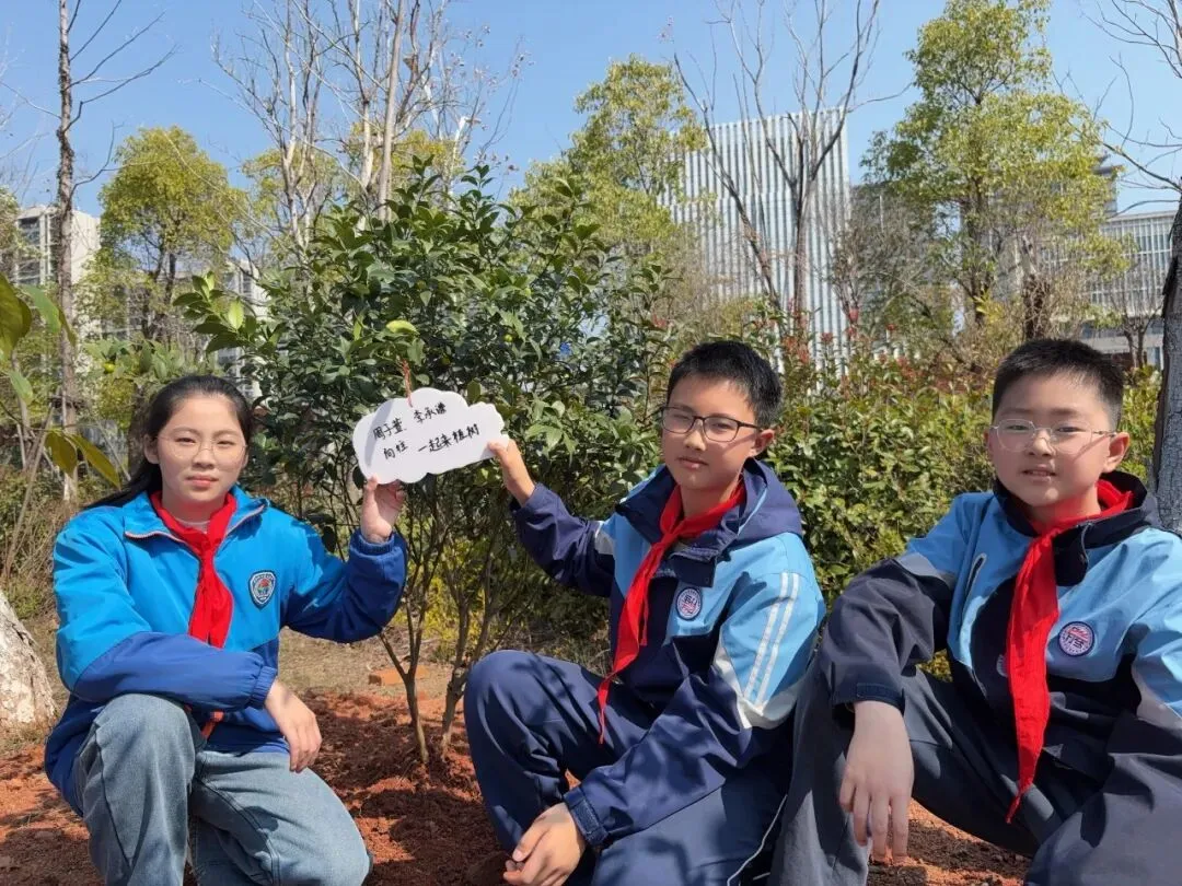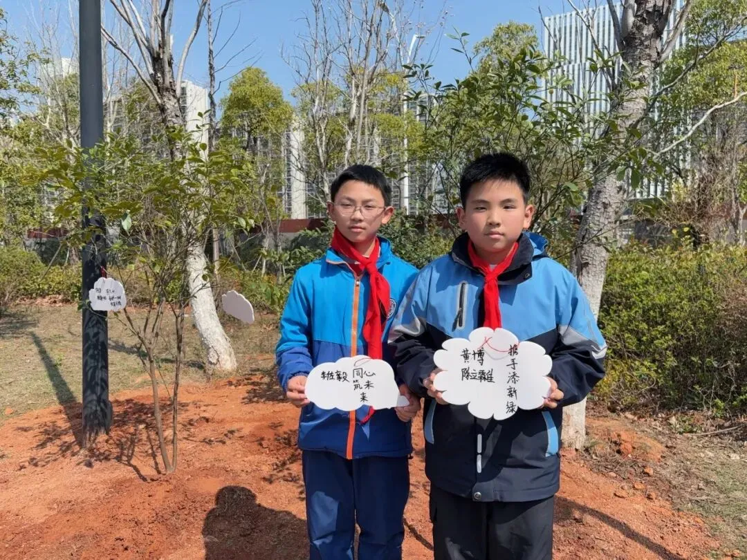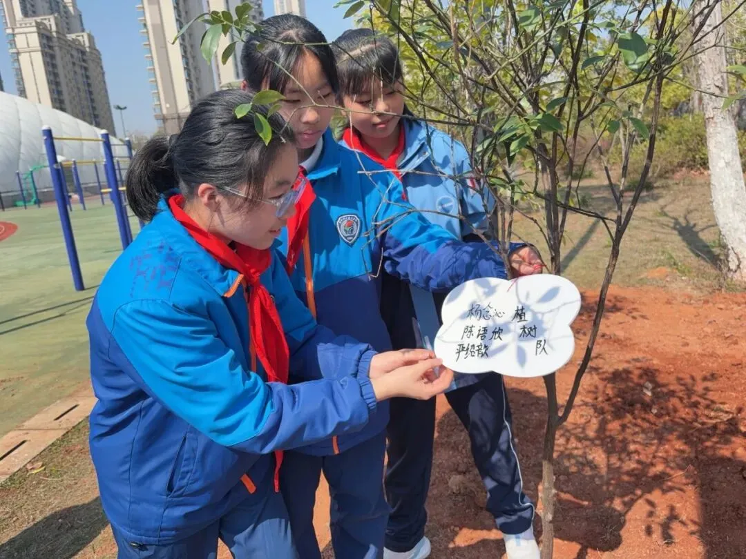 “这棵小树是我的朋友,我要给它挂上名字牌!”队员们分组行动,在老师的协助下,亲手栽种树苗并挂上专属树牌。树牌上稚嫩的笔迹写满童真承诺:“我会每天来看你”“小树快快长大”……一棵棵“友谊树”“成长树”从此扎根校园,成为队员们与自然对话的桥梁。