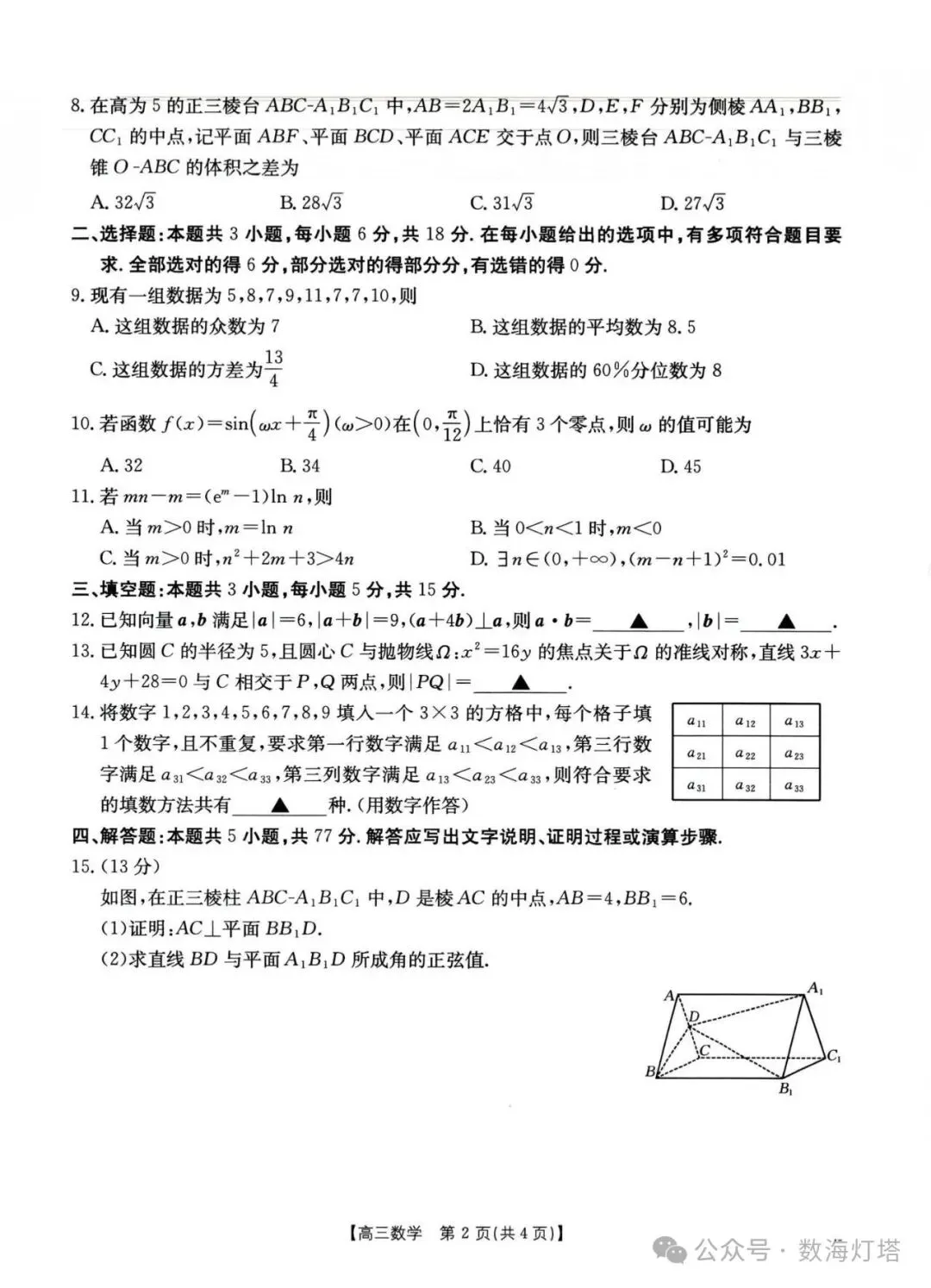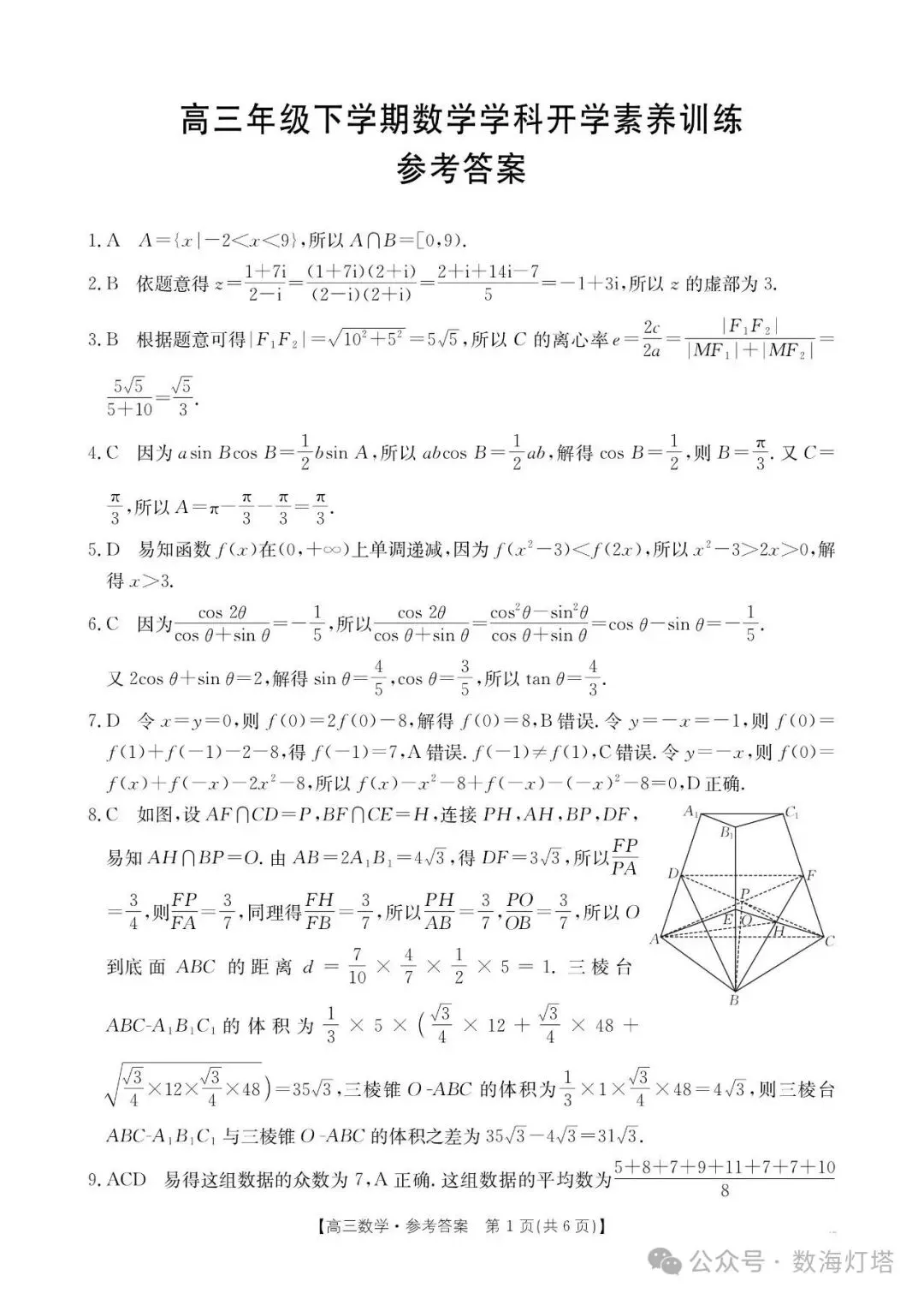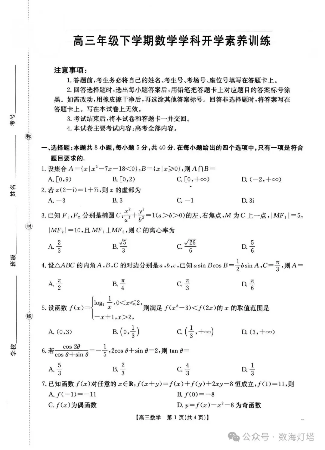 江西省南昌市2026届高考高三下学期开学考试素养训练数学