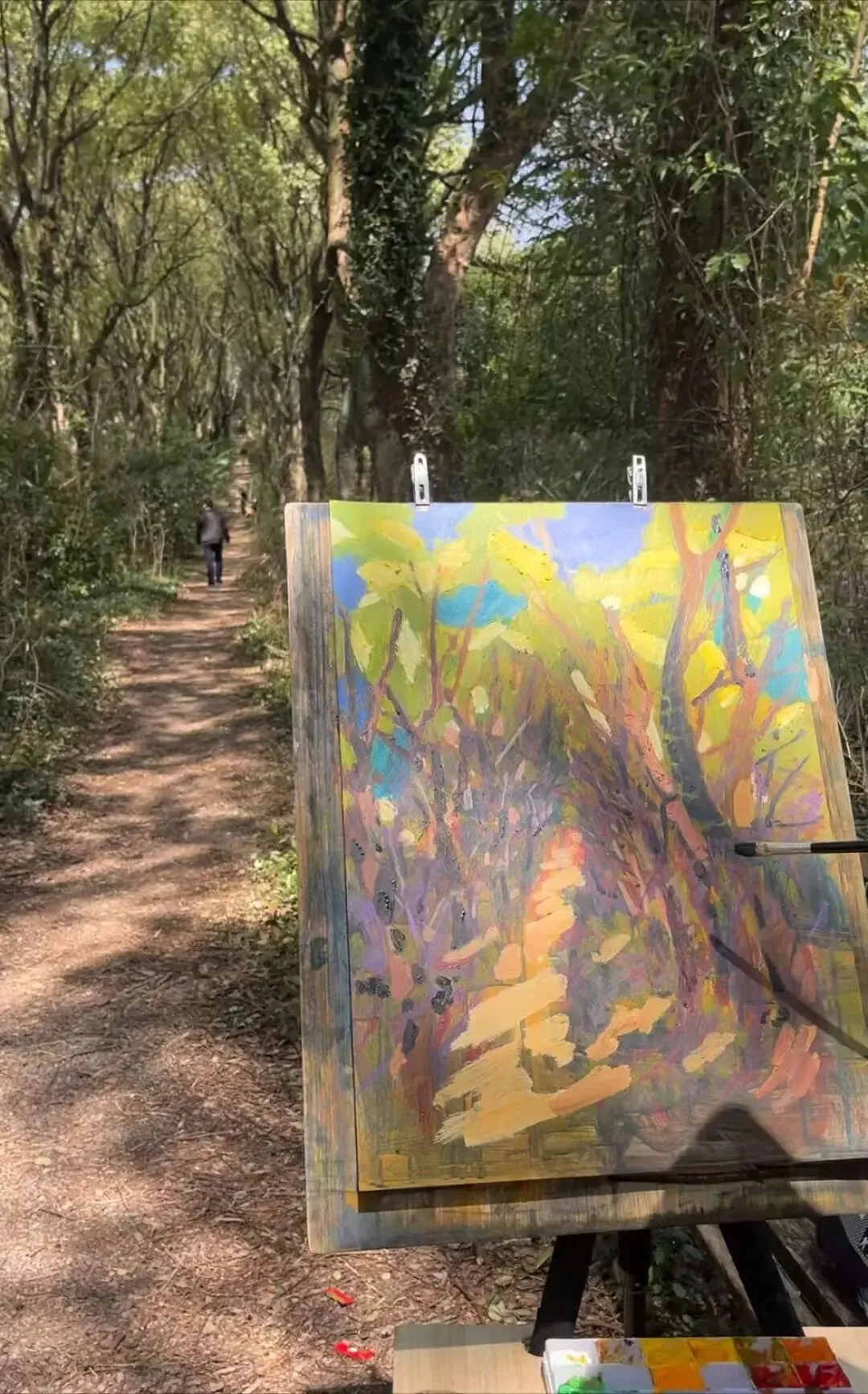 小路上,一位张姓男子正专注写生。他告诉记者,自己是江西省写生学会会员,也是刷到网上的短视频后,被这条林间小路的景致所吸引,专程前来创作。黄先生的画作色彩饱满、意境悠远,吸引了不少游客驻足观赏、拍照留念。