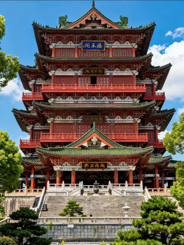 这城市也怪有意思的,新和老挨得特别近。滕王阁那边还是古色古香,转个弯就到了热闹的商业街,高楼大厦,人来人往。赣江从城市中间穿过去,把南昌分成两半。水不急,慢慢地流,就像这座城市的气质,不争不抢,有自己的节奏。站在滕王阁上极目远眺,江水流向远方,与天际相融,“落霞与孤鹜齐飞,秋水共长天一色”,江水流得缓,天也阔,一瞬间真能感受到王勃当年那种豪情。千年过去,物是人非,可这份天地辽阔的豪情,却始终留在赣江的碧波里。