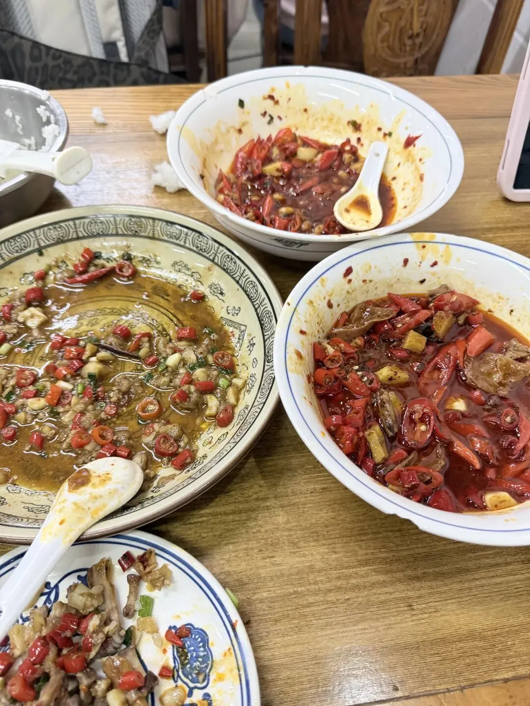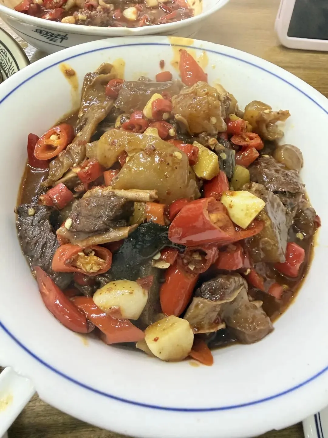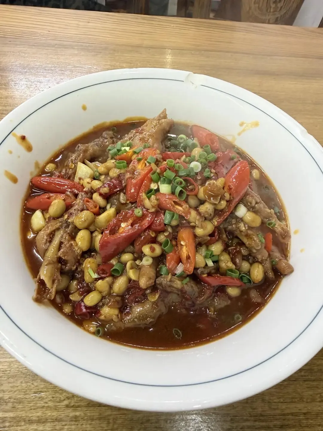 进门就感觉来对了地方不是那种网红店,盘龙茄子软嫩多汁,酱香十足,每一口都超满足超级下饭。黄豆鸡脚:味道还是很正宗的比较偏辣,但是鸡脚没有那种软烂脱骨,里面的黄豆加汤汁比较下饭,推荐把汤汁加黄豆倒碗里拌饭吃,不推荐不能吃辣的这样吃,牛腩牛筋:牛腩酥而不烂,牛筋软糯弹牙,胶质满满,香而不腻,每一口都是浓郁醇厚的满足,特别是牛筋。