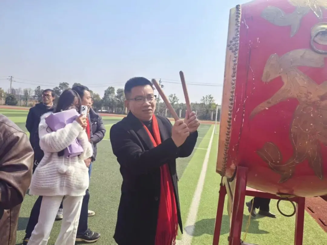 大会最后,戴校长与胡校长亲自为初三学子击鼓助威,鼓声激昂、振奋人心。全体初三师生依次迈过“成功门”,寓意跨过坎坷、奔赴成功,每一步都承载着希望,每一步都坚定着方向。