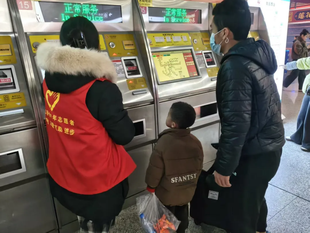 在志愿服务过程中,我们在上岗前一小时到达并接受了专业培训,熟练掌握了自助售票机的全流程操作、地铁线路走向、票价查询、换乘路线以及常见问题处理方法。服务期间,我始终坚守在售票机旁,主动上前为有需要的旅客提供帮助。面对老年旅客,我放慢语速、耐心讲解,手把手协助他们选择目的地、完成支付和取票;针对外地游客,我细致解答线路咨询、出站口方位等问题,帮助他们快速规划出行路线;遇到设备卡顿、支付失败等突发情况,我第一时间安抚旅客情绪,并及时联系工作人员进行检修,同时引导旅客前往人工窗口或其他设备分流。并且提醒大家有序排队、保管好个人财物,协助携带大件行李、行动不便的旅客购票,保障现场秩序井然有序。