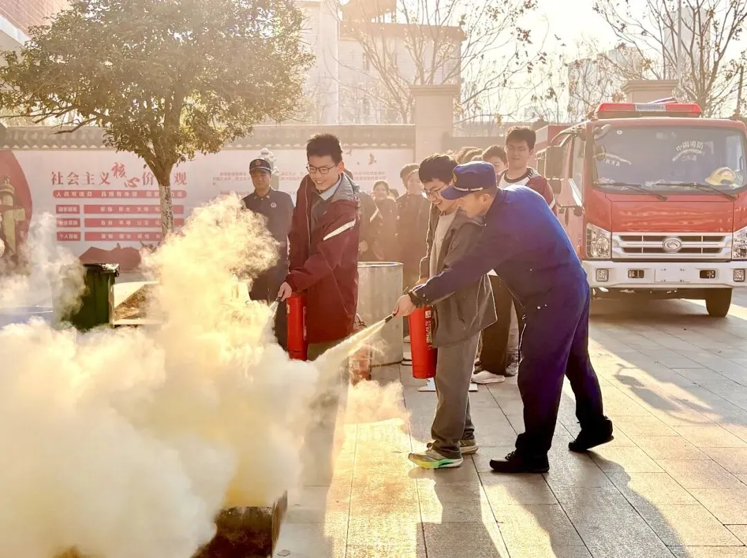 最后,在消防器材实操环节,消防员将真实火情中的应对方法直观呈现在大家面前,把灭火器规范使用“一提、二拔、三握、四压”的操作要领拆解讲解、标准示范;演示结束后,消防员邀请同学们亲自上手体验灭火,大家踊跃参与,在消防员的专业指导下顺利扑灭模拟火源,切实掌握了灭火器的正确使用方法,有效提升了突发火情下的应急处置能力。 对同学们而言,这是一次沉浸式的消防学习,但对消防员来说,每一次出警与救援,都是年复一年的坚守与奔赴,他们逆行在危险前线,用专业、坚守与生命为人民群众的安全保驾护航。