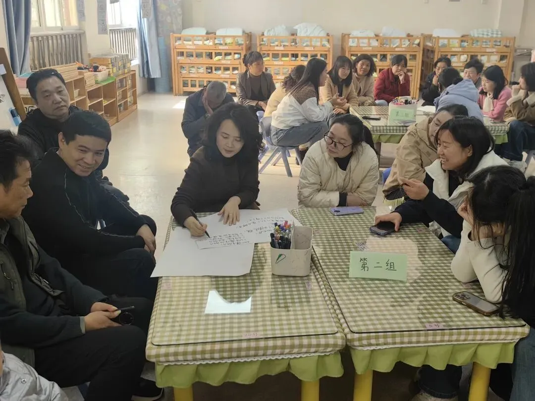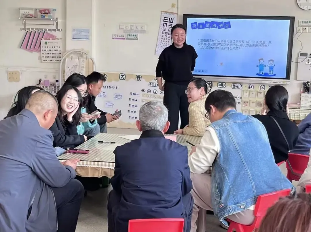 在亲身体验了孩子们日常的运动探究后,围绕一个个源自孩子的真实问题,家长们分组围坐展开深度对话,从问题的起点出发,思考它会引发孩子怎样的探索,预想在解决问题的过程中,孩子们将收获怎样的成长。他们站在儿童的视角,去想象孩子会如何好奇、如何试探、如何在自己的节奏里建构经验,也重新审视自己作为“合伙人”的角色:可以是经验的分享者,可以是资源的提供者,更可以是孩子探究旅程中最温暖的陪伴者。教师向家长呈现了本学期项目活动的预设脉络,那些交织的线索与节点,既承载着教师的专业思考,也预留了孩子好奇心自由生长的空间。