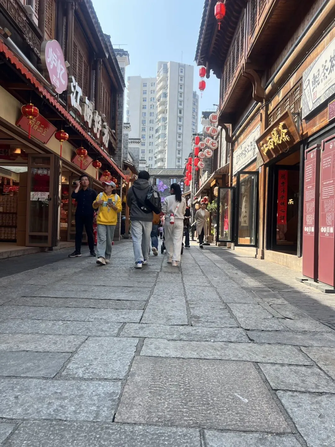 一进街区,古色古香的徽派建筑映入眼帘,青石板路铺得整整齐齐,白墙灰瓦搭配雕花飞檐,老南昌的古韵一下子拉满。