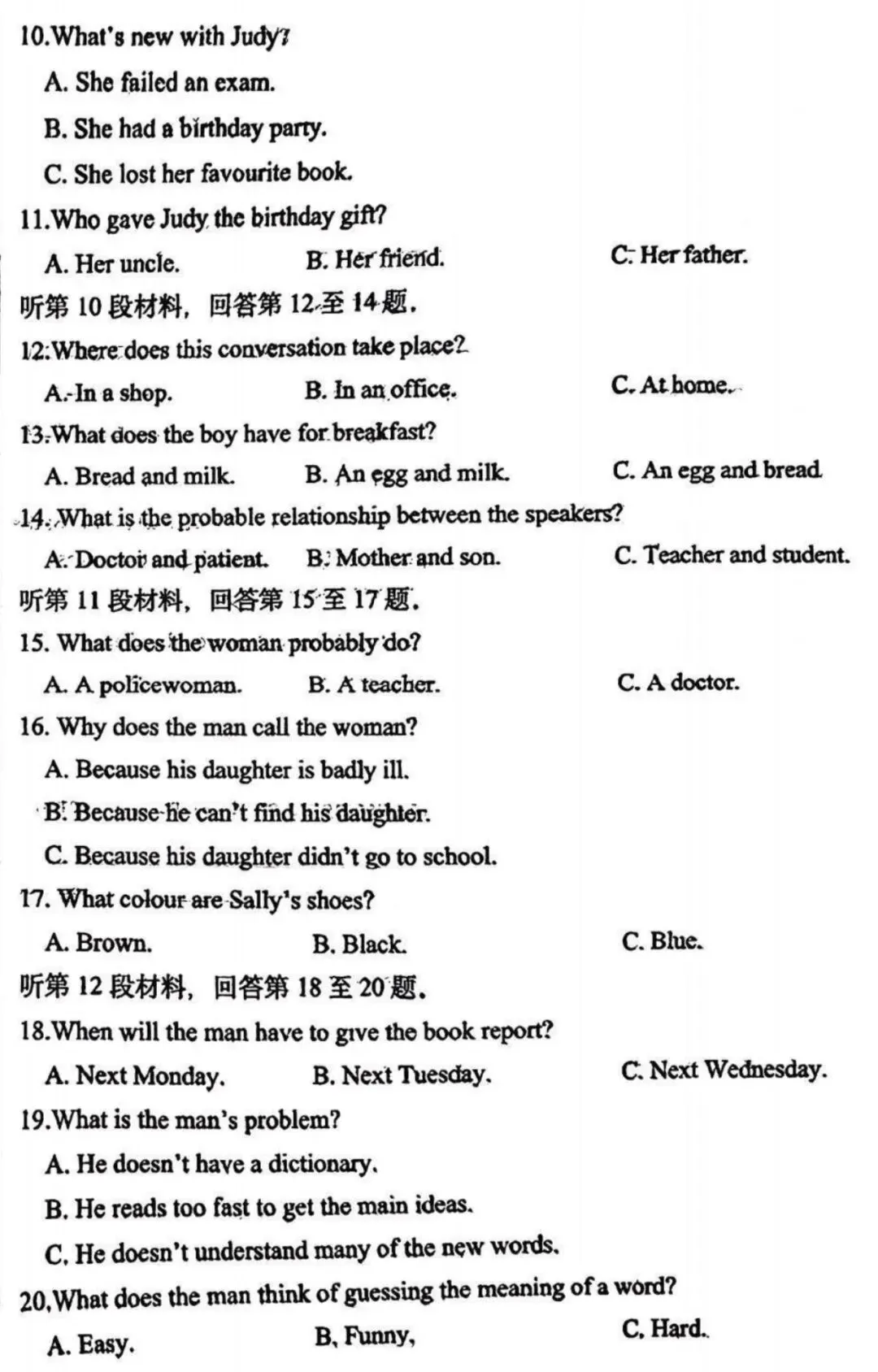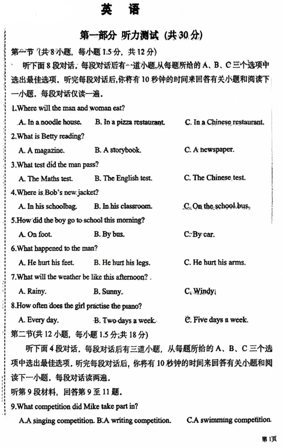 >2026沈阳南昌中学九年级下零模英语听力音频,试卷答案,2026辽宁省初三下学期3月考英语听力音频