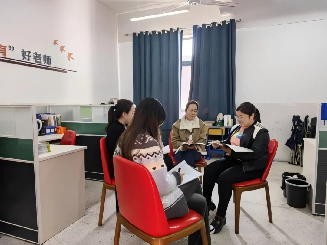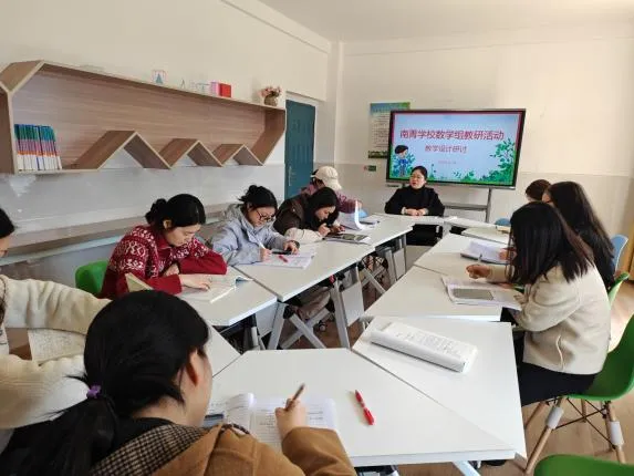 数学教研组开展教研,反馈常规检查问题,全体组员共同研讨教案设计方法,优化教学备课环节。