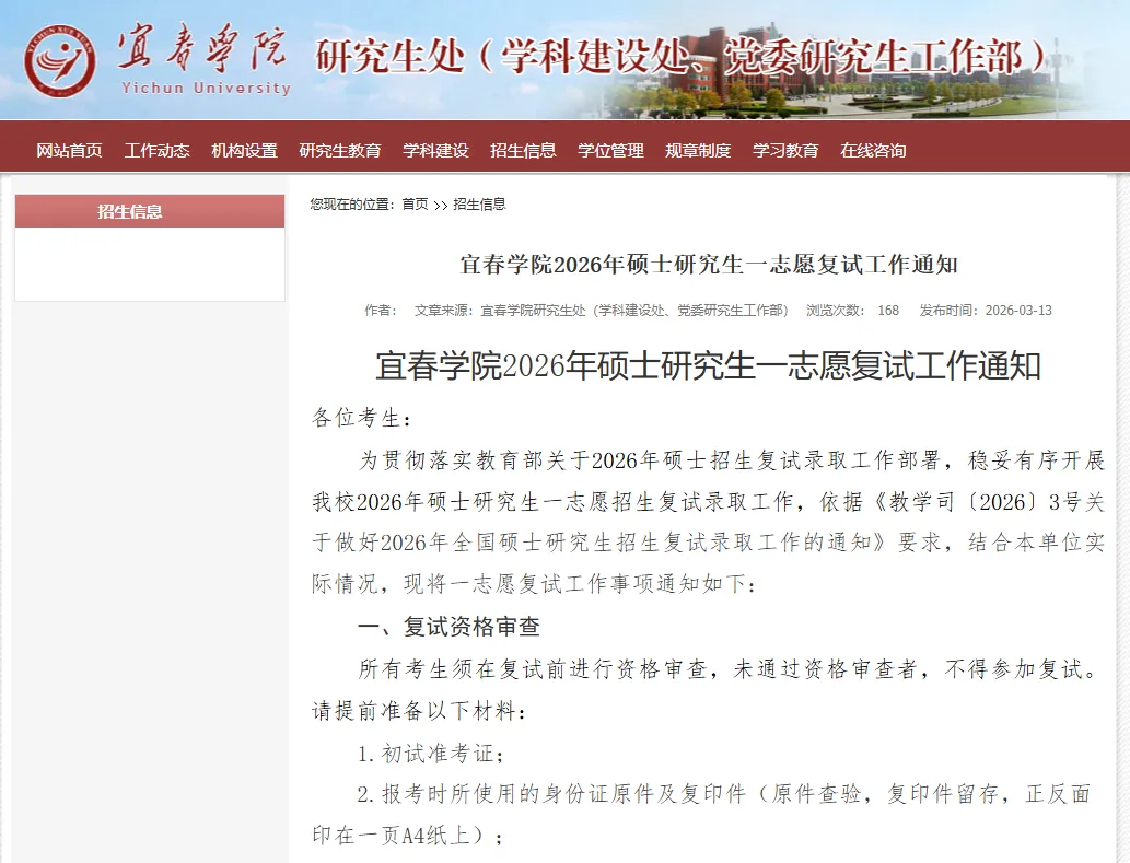 宜春学院2026年硕士研究生共13人进入一志愿复试: