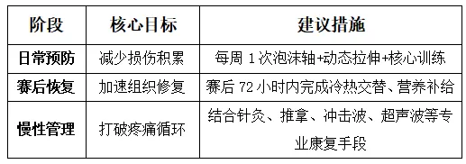 表现:足跟或足底近跟部疼痛,尤以晨起第一步最为剧烈,行走后稍缓解,长跑后加重。成因:足底筋膜长期过度牵拉,常见于扁平足、高弓足或跑鞋支撑不足者。(1)冰敷:用冰杯在足底滚动5-10分钟,每天2次,减轻局部炎症。(2)制动:避免赤脚行走,减少足部承重,必要时使用拐杖辅助。(1)筋膜球放松:用网球或筋膜球在足底来回滚动,每次5分钟,每日2-3次。(2)足趾抓毛巾训练:赤脚抓取地面毛巾,每组10次,每日3组,增强足内在肌。(3)拉伸腓肠肌与比目鱼肌:靠墙弓步压腿,保持30秒×2组,每日2次。(4)中医康复治疗:可行针刺、艾灸、推拿等治疗舒筋活血通络,促进损伤组织修复。穿戴定制矫形鞋垫,纠正足弓塌陷;选择后跟杯深、中底缓震强的跑鞋,旧鞋超800公里建议更换。表现:膝盖前方或髌骨周围疼痛,上下楼梯、久坐后起身时加重。成因:股四头肌与臀中肌力量失衡、步态异常、落地冲击过大。1.急性期处理:冰敷膝关节前侧15-20分钟,每天2-3次,减轻滑膜炎症。避免上下楼梯、深蹲等加重负荷动作。(1)靠墙静蹲:双脚与肩同宽,缓慢下蹲至膝盖弯曲30°,保持30秒×3组,增强股四头肌控制力。(2)单腿硬拉:站立单腿,身体前倾触地,保持平衡,每侧10次×3组,提升臀中肌稳定性。(3)弹力带侧步走:膝盖微屈,横向移动,强化髋外展肌群,预防膝内扣。(4)跑姿优化:提高步频至170-180步/分钟,减少跨步跑,降低髌骨压力。(5)康复治疗:可行针刺、艾灸、推拿、理疗等治疗活血通络止痛,促进损伤组织修复。表现:跟腱区域疼痛、肿胀,晨起僵硬,跑步中后期有“灼烧感”。成因:小腿肌肉紧张、训练量突增、跑鞋缓冲不足。(1)遵循RICE原则:休息(Rest)、冰敷(Ice)、加压(Compression)、抬高(Elevation),暂停跑步,改用游泳、骑行等非负重运动维持体能。(2)离心性提踵训练:站在台阶边缘,健侧脚抬起,患侧脚缓慢下放至足弓拉伸,再用双侧脚抬起。每日2组,每组15次,持续12周可显著改善跟腱。(1)冲击波治疗:打破钙化灶,激活组织再生,适用于慢性跟腱病。(2)穿高跟鞋或使用heel lift 垫高足跟,减轻跟腱张力。(3)康复治疗:可行针刺、艾灸、推拿等治疗活血通络止痛,促进损伤组织修复。表现:大腿外侧疼痛,尤其在下坡或长距离后半程加剧。成因:髂胫束与股骨外上髁反复摩擦,常因臀中肌无力、步幅过大引起。(1)软组织松解:泡沫轴滚动大腿外侧(髂胫束),每次5-10分钟,每日2次,注意控制力度避免神经压迫,配合按摩枪对臀中肌、阔筋膜张肌进行放松力量重建。(2)侧卧抬腿:侧卧,上腿伸直上抬,每侧15次×3组。(3)蚌式开合:屈膝90°,脚跟并拢,打开膝盖,每侧15次×3组。(4)跑姿调整:缩短步幅,提高步频,避免“跨步跑”。(5)康复治疗:可行针刺、艾灸、推拿、理疗等治疗活血通络止痛,促进损伤组织修复。表现:大腿后侧(腘绳肌)、小腿三头肌突发剧痛或持续酸胀。立即停止运动,遵循RICE原则,48小时内禁止热敷、按摩或剧烈活动。(1)热敷促进血液循环,每次20-30分钟,每日2-3次。(2)轻柔拉伸:坐姿前屈拉伸腘绳肌,保持30秒×2组。(3)逐步恢复:从快走开始,过渡到慢跑,心率控制在最大心率的60%-70%。(4)营养支持:补充优质蛋白(如鸡蛋、鱼肉等)+维生素C(如猕猴桃、脐橙等),促进肌纤维修复;每小时补充含钠、钾的运动饮料500mL,预防抽筋。(5)康复治疗:可行艾灸、推拿、理疗等治疗舒筋、活血、通络止痛。积极进行康复治疗,可降低马拉松跑者受伤风险。若疼痛持续超过7天或出现关节卡锁、行走困难,应及时就医排查应力性骨折或半月板损伤。