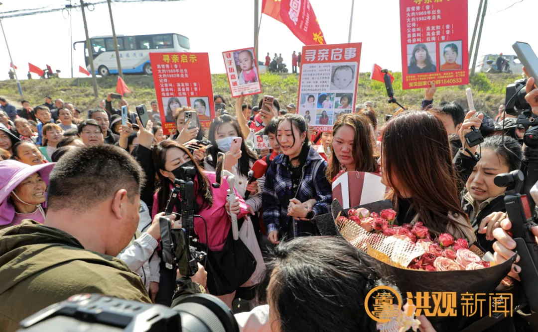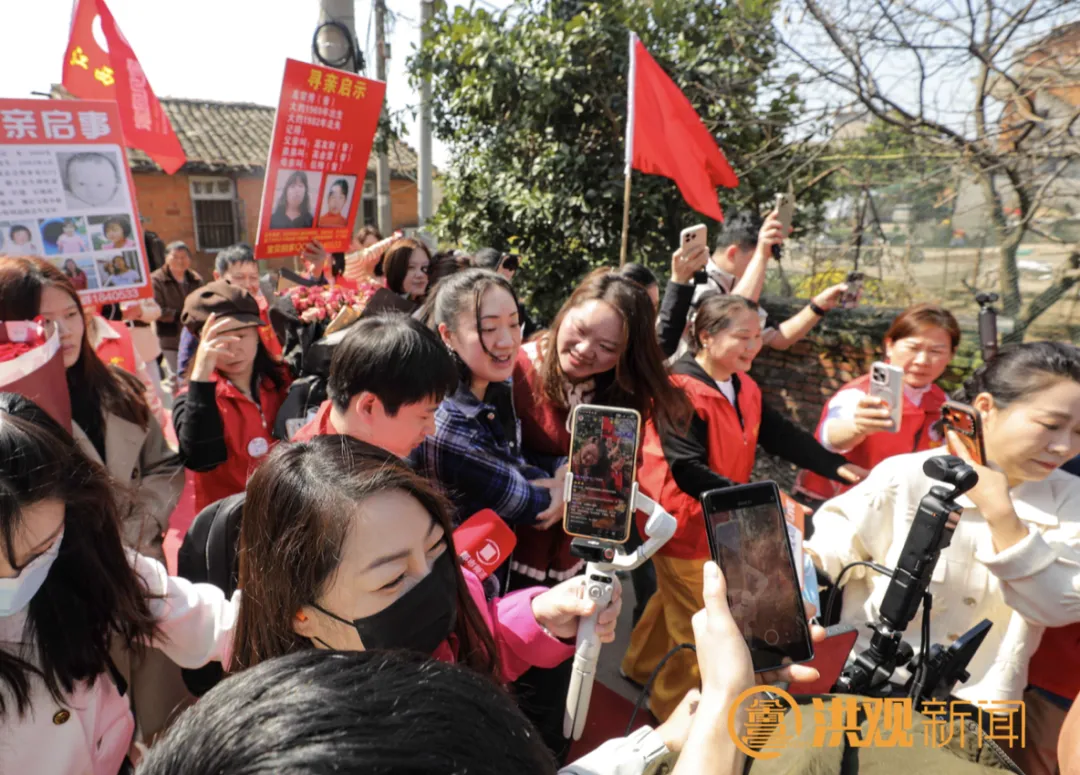 3月14日上午,接洪杨丽回家的队伍在南昌县南新乡中徐村村口静静等候,她亲生父母的家门口,一幅红底黄字的“欢迎宝贝徐杨回家”横幅格外醒目,红色灯笼与彩旗将小院装点得喜气洋洋,藏着家人二十八年的漫长期盼。洪杨丽刚到村口,等候已久的姐姐便快步上前,双手捧着盛放的鲜花递到她面前,眉眼间满是温柔欢喜。不远处,父母按捺不住激动,快步迎上,无需过多言语,只一把将她紧紧拥入怀中,这份跨越山海的拥抱盛满思念与牵挂,三人相拥而泣,泪水里有久别重逢的酸涩,更有终得团圆的欣慰。