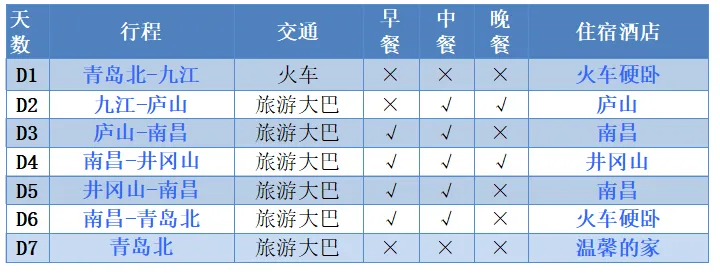 景点门票:行程内景点门票(庐山、井冈山均为套票,减少任何景点概不退门票)