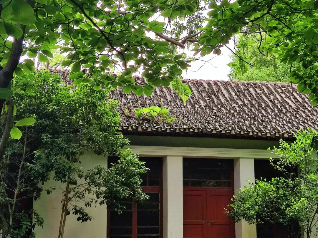 薄雾缭绕时木质台阶藏于斑驳光影间
