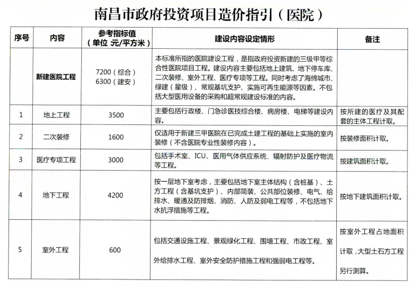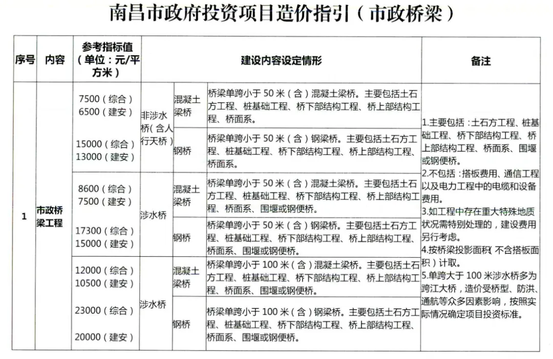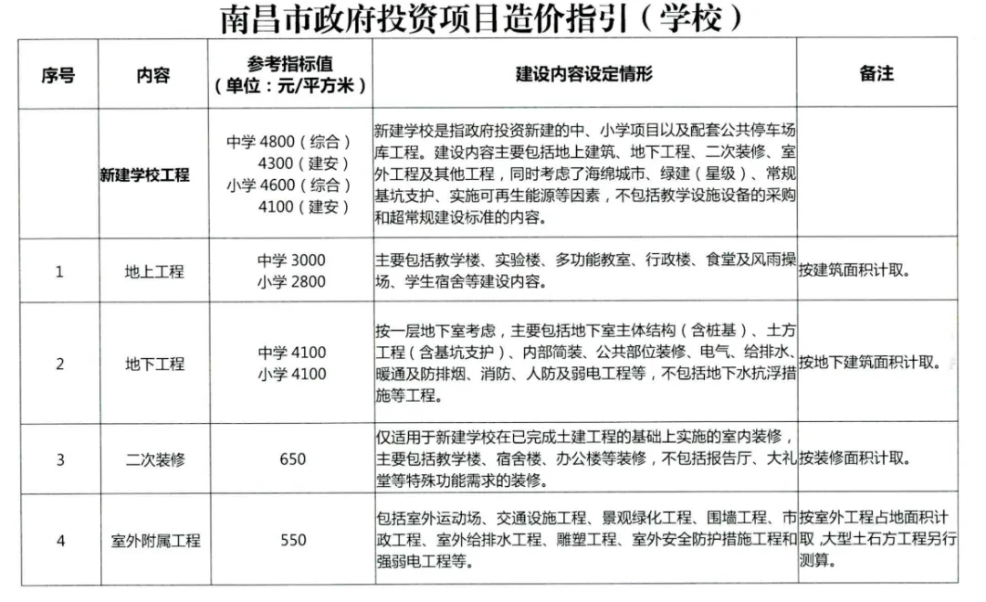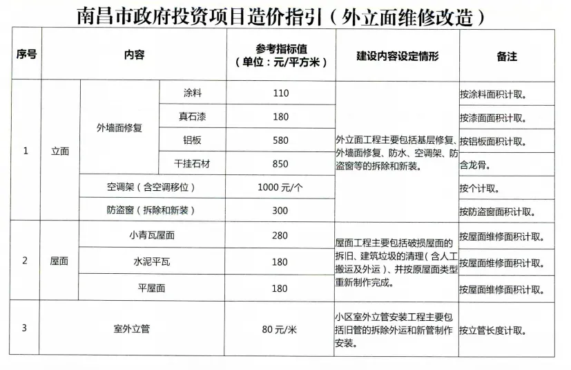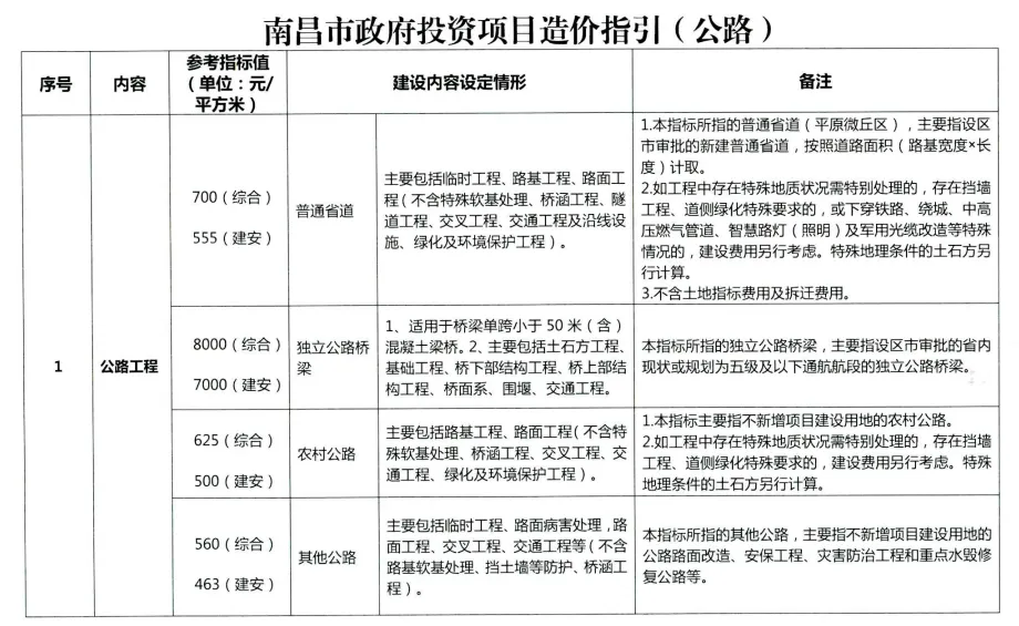 最近看到南昌市发布的政府投资项目造价指引,主要包括市政道路、桥梁、公路、保障性用房、学校、医院、绿化、装修、停车场、外立面改造等内容,分享给大家!