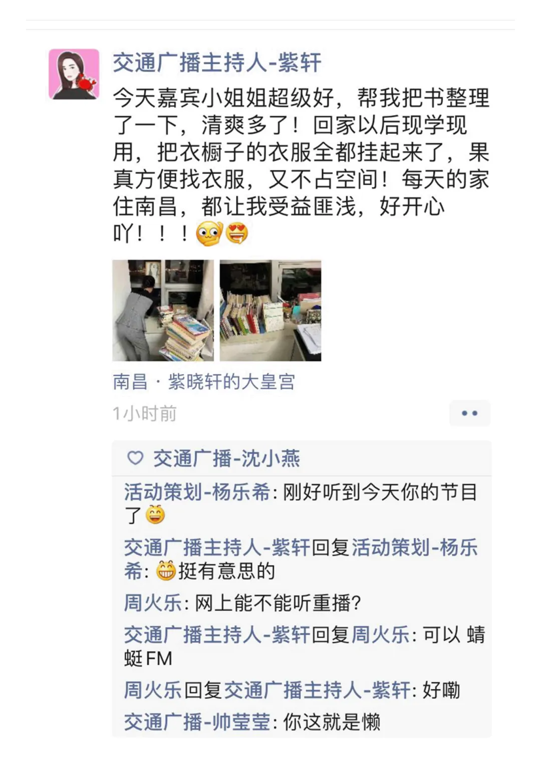 直播结束后,主持人紫轩第一时间在朋友圈分享了自己的 “现学现用”,这条动态也引发了众多听众的共鸣,大家纷纷表示,这场直播不仅学到了实用的收纳技巧,更对这个新兴职业有了全新的认识。