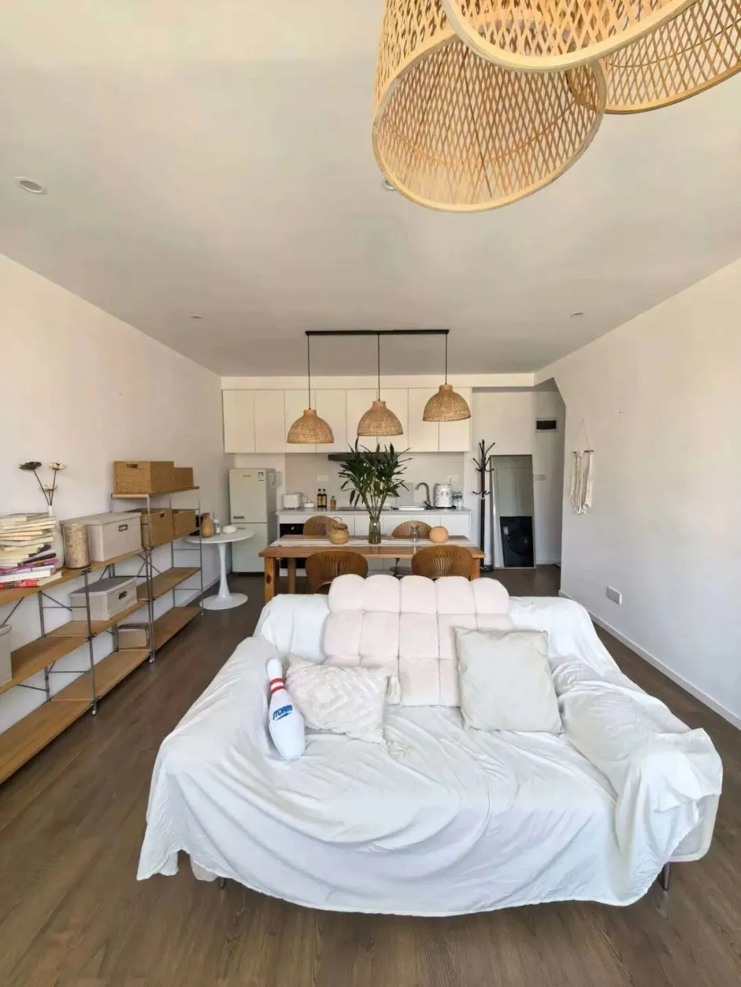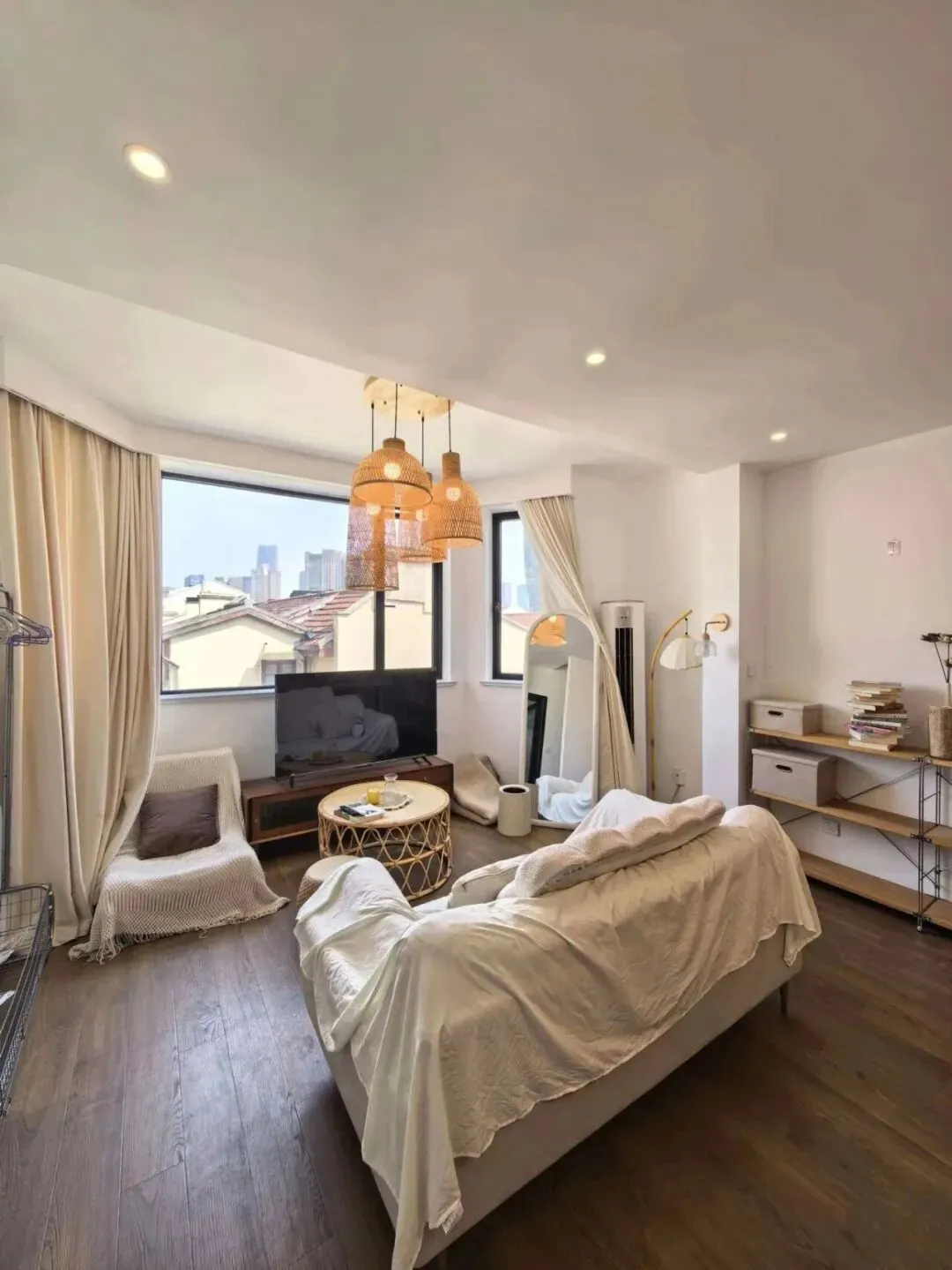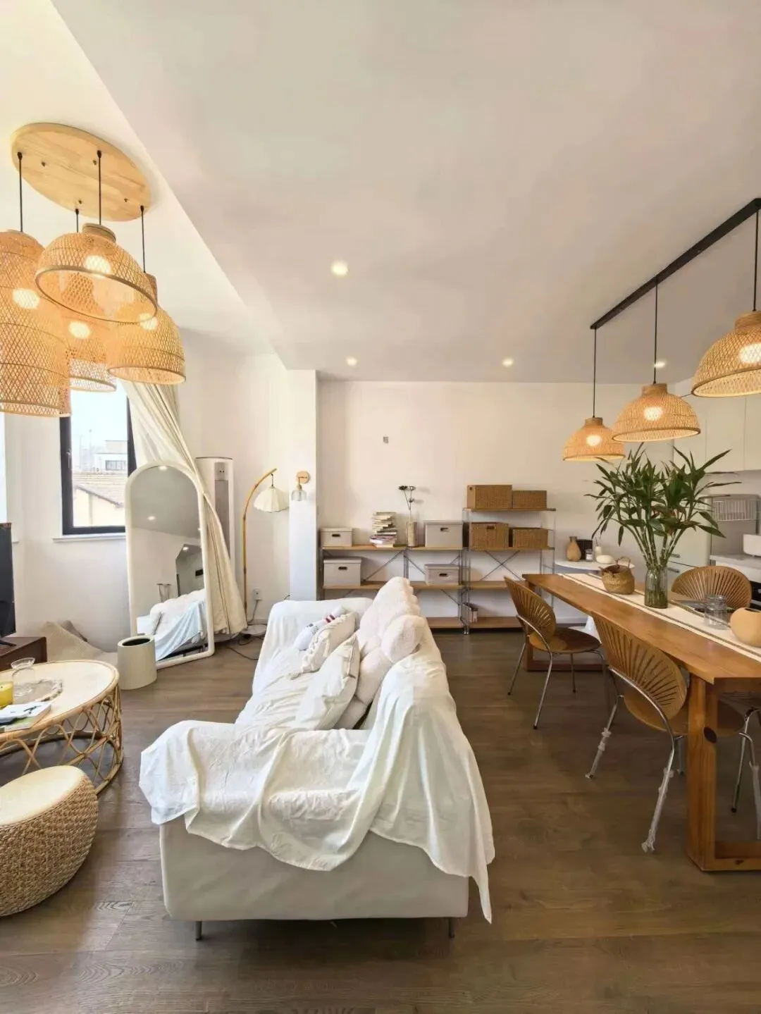 阁楼天窗卧榻,躺看天光云影;客餐厅通透开阔,藤编灯具与绿植点缀氛围感拉满;全屋定制收纳,整洁实用