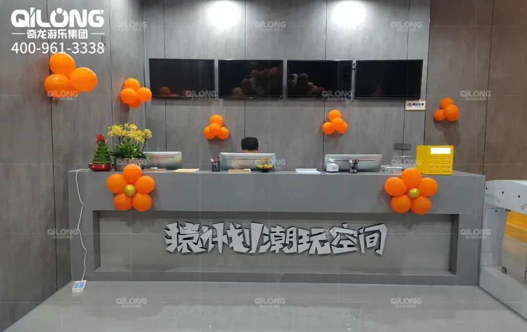 门头黄色与黑色的撞色不仅令人眼前一亮,也象征着猿计划潮玩空间的活力和创新。而灰色服务台则代表专业和可靠性。