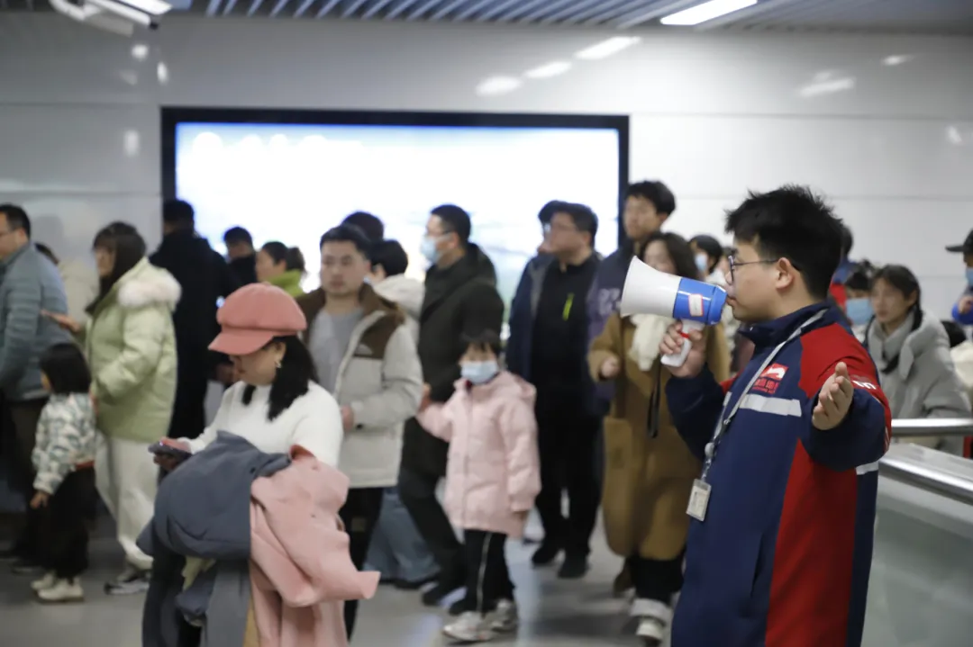 南昌西站、南昌火车站、南昌东站、昌北机场站等四大交通枢纽日均进站客流较春运前增长15%以上,双港、瑶湖西等高校周边站点也迎来集中返程高峰。地铁与铁路、民航、公交等单位加强联动,动态调整组织措施,形成“到站即接、出站即行”的顺畅衔接。同时,围绕迎春烟花晚会、万寿宫新春大集、滕王阁祈福盛典等文旅热点,重点站点实施潮汐式客流引导,确保大客流时段平稳有序。