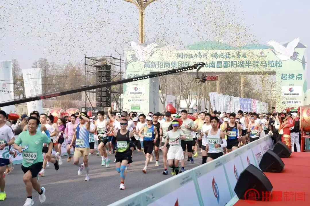据了解,2026南昌鄱阳湖半程马拉松活动是农历丙午马年江西省的首场大型马拉松赛事,也是我省马年系列体育活动的“揭幕战”。本次半程马拉松全程21.0975公里,同时增设“英才跑”赛中赛环节,为跑者搭建以体育为纽带、以奔跑为媒介的跨界交流平台,实现体育竞技与人才联动的双向赋能,活动吸引了来自全国各地的4000多名马拉松爱好者参与。赛事期间,南昌高新区在马拉松起点入口处,设置了白鹤小镇乡野市集,全长约200米,设有35个特色摊位及美食打卡点,让跑者在竞技之余感受本土烟火气息。