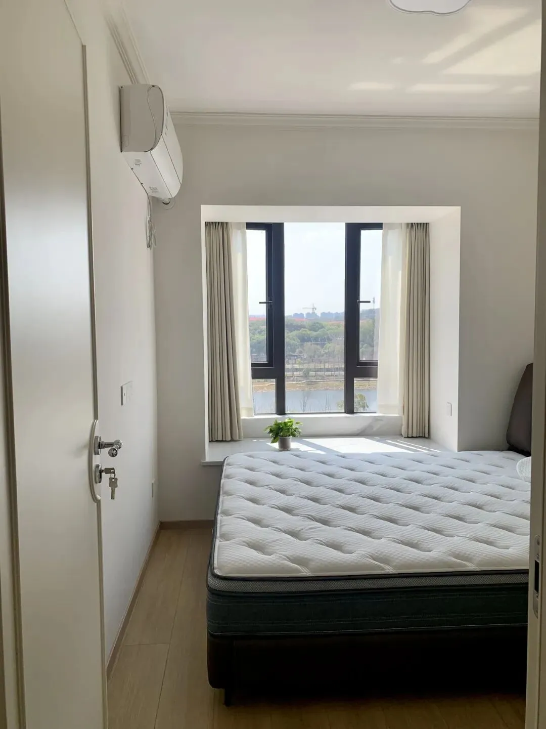 主卧作为居家最核心的私密休憩场,空间整体以纯净的奶油白墙面为基底。