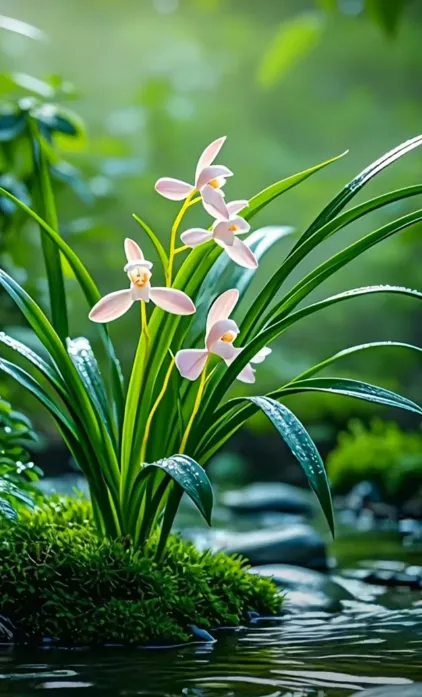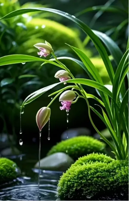 野寺飞泉落珠玉,四面繁花吐芬芳。
