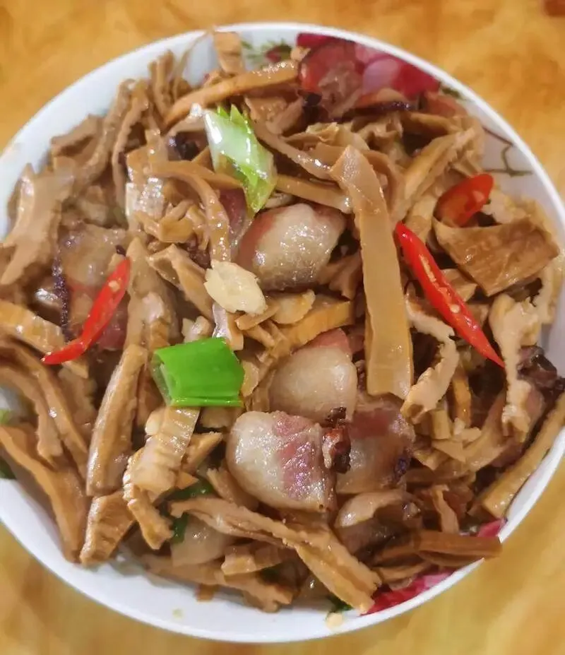 中午建议吃点山里的“硬菜”。井冈烟笋炒腊肉,笋脆,腊肉咸香带烟火味,嚼着有回甘。再来一碗南瓜汤,甜不是糖的甜,是瓜自己熟透的甜,喝下去,胃就安稳了。