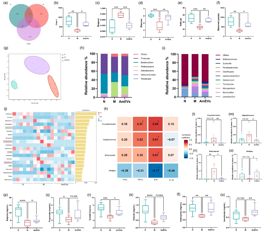 图3. AmEVs对结肠炎小鼠肠道微生物群和SCFA的重塑