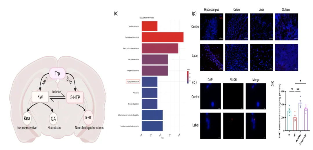 5.AmEVs调控色氨酸代谢、恢复5-羟色胺(5-HT)平衡并靶向海马神经元