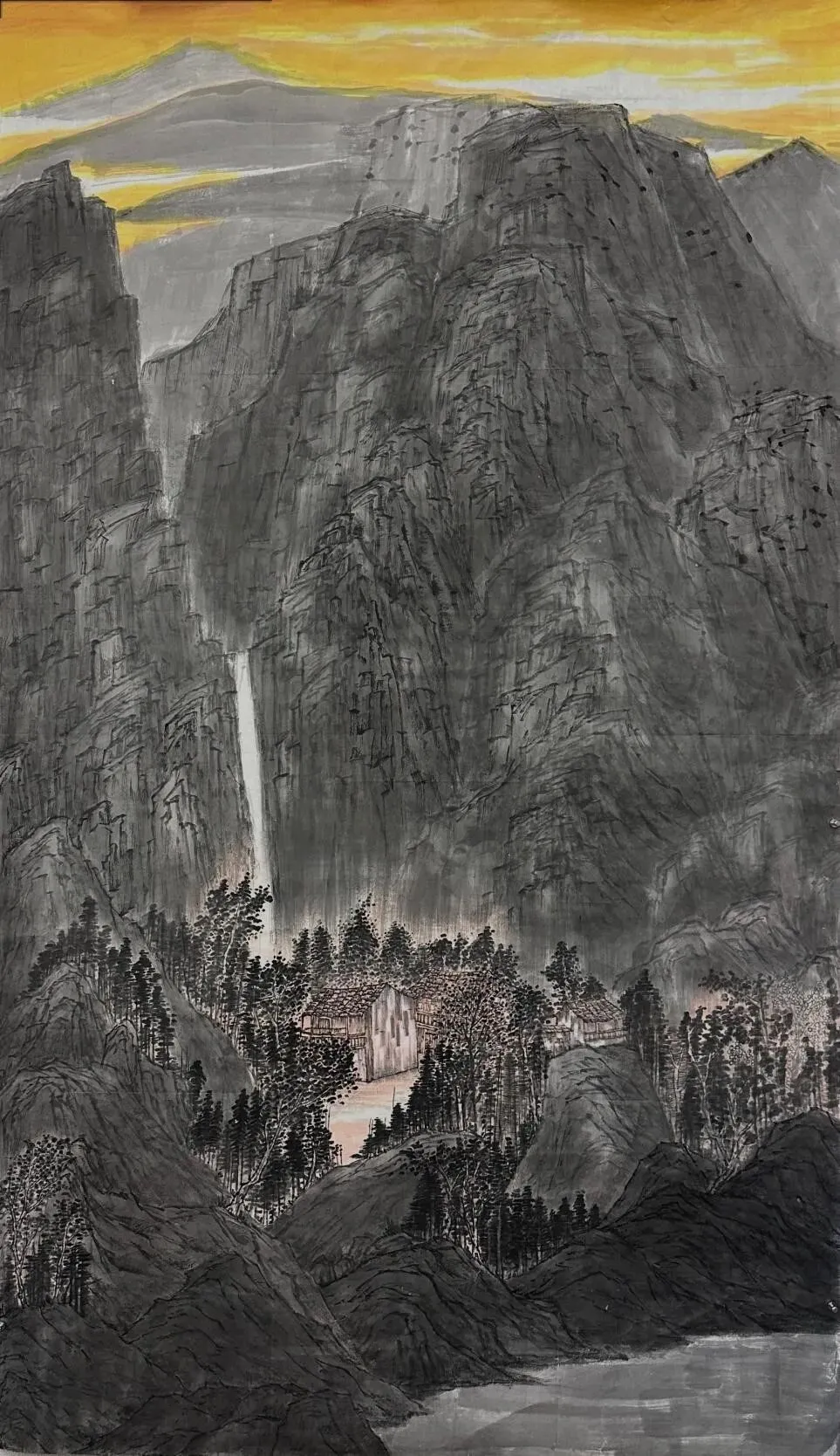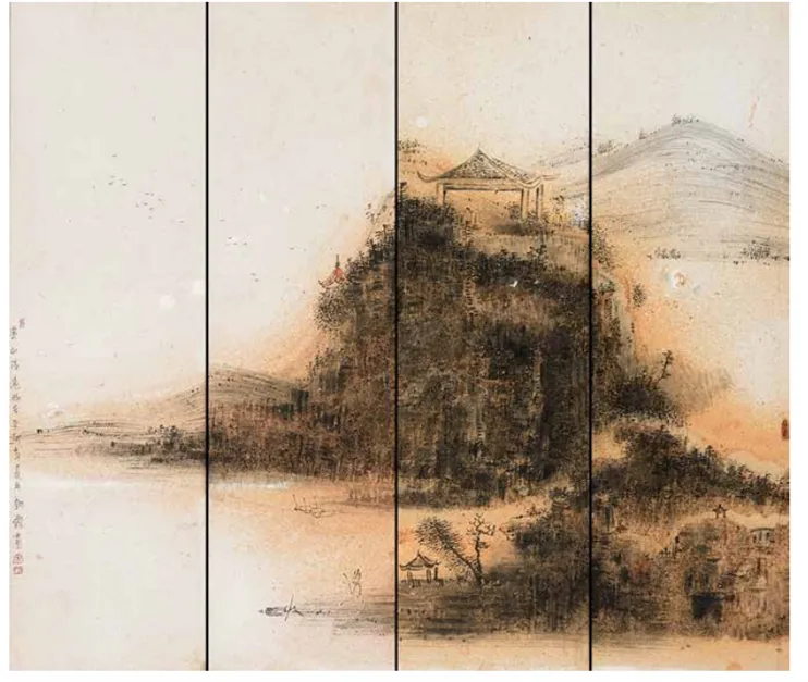 余朝霞《清山远时在 》瓷板画 56cmx17.3cmx4