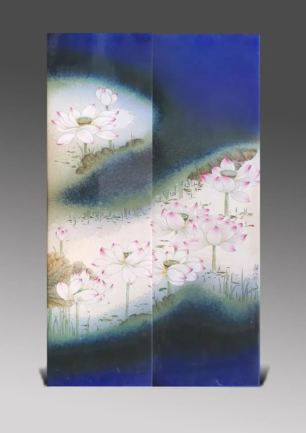 钟山《睡梦荷》瓷板画108cm x27cm x2