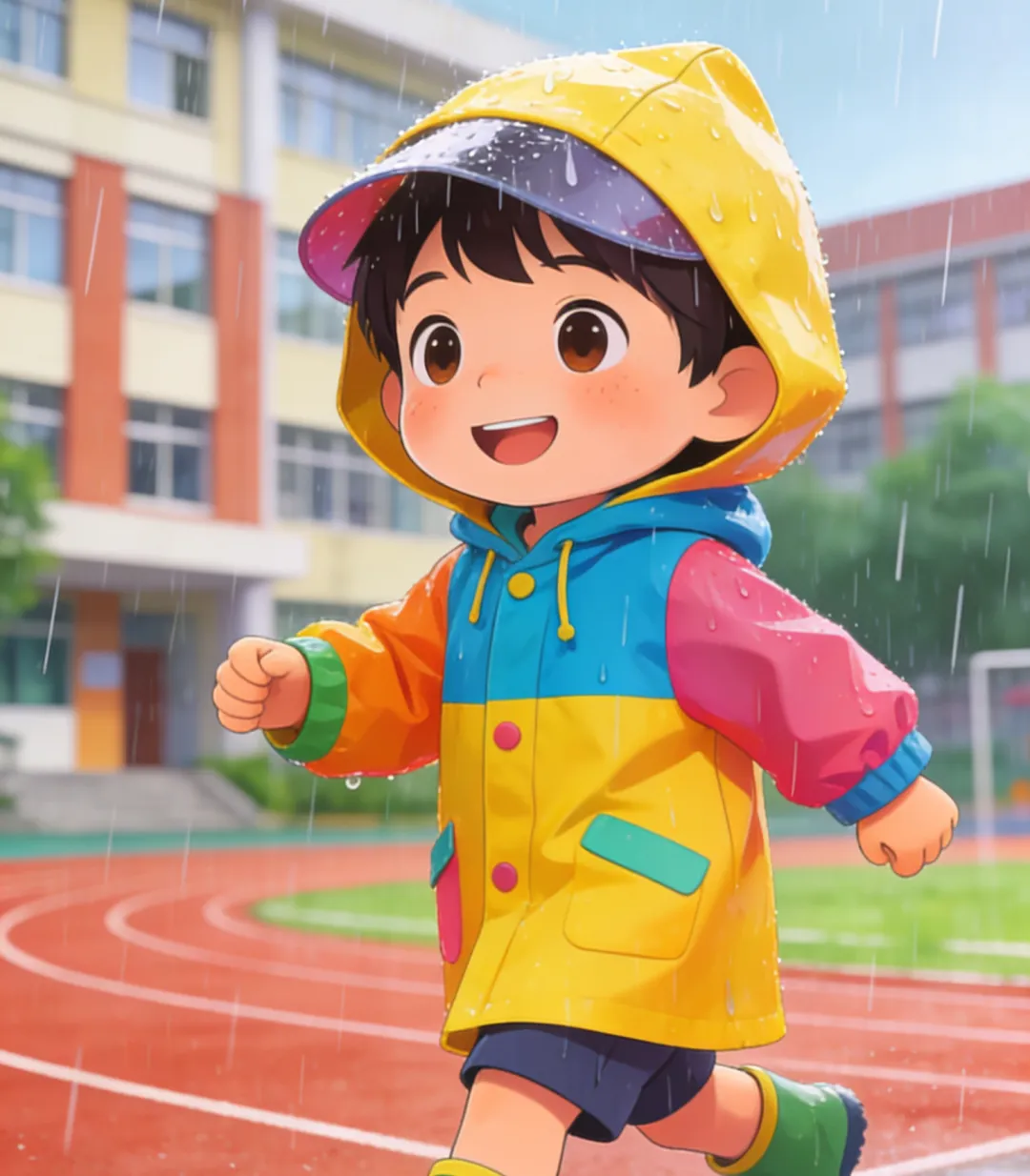 1. 穿上雨衣上下学,雨衣不要遮挡眼睛,保证能清晰观察路况。