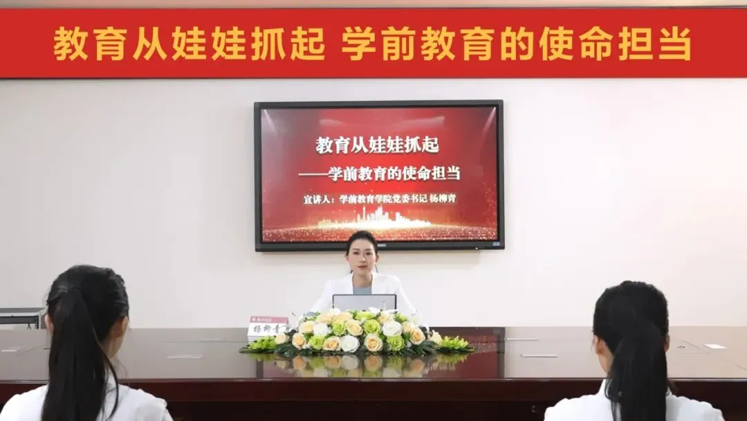 人生百年,立于幼学。学前教育关系亿万儿童健康成长,关系千家万户幸福和谐,关系国家发展和民族未来,学前教育学院将坚持依托学校的“三人行”党建工作品牌,发扬好学前教育学院红旗引领、红心铸魂、红烛传承的“学前三红”精神,在学思想、强党性、重实践、建新功中,着力营造清廉院风、清正教风、清新学风,不断探索学前教育高质量发展之路,让党的旗帜在助力基础教育发展的新征程中高高飘扬。