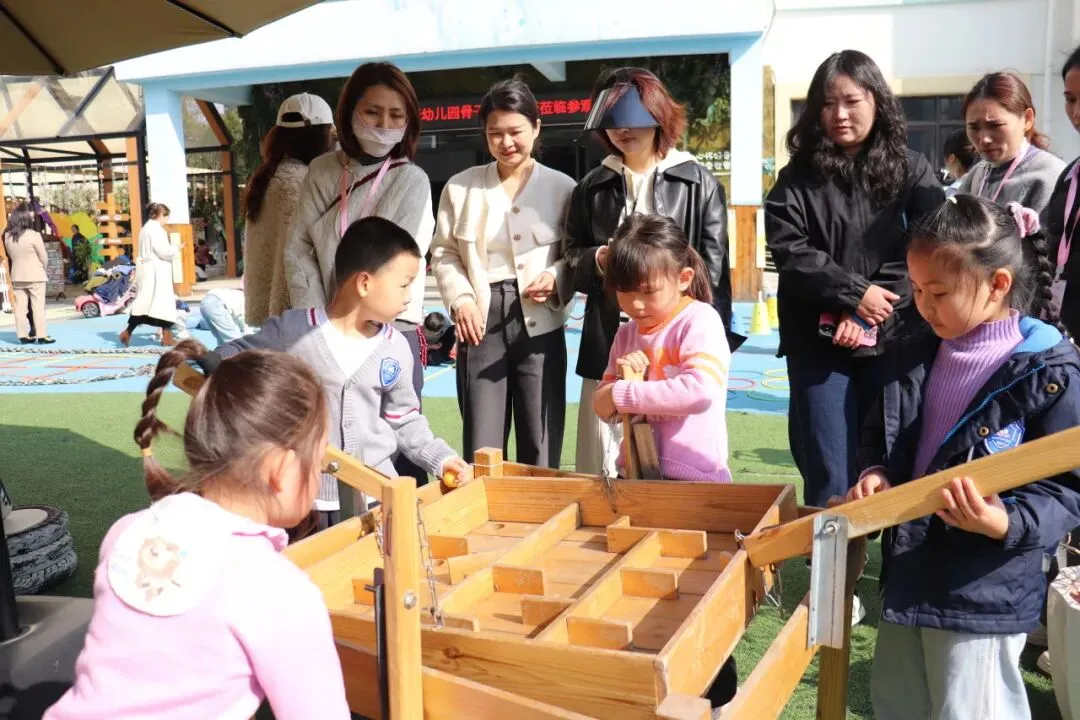 观摩过程中,老师们驻足观察、细致记录,近距离感受澜湾幼儿园在户外项目式游戏中的匠心实践。丰富且有层次性的游戏材料科学投放,充分彰显了 “以幼儿为中心” 的教育理念。