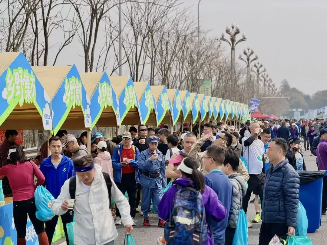 为满足赛前赛后就餐、住宿以及游玩的需要,进一步完善活动场景,为参赛选手及观众提供更好的服务,赛事期间,白鹤小镇乡野市集亮相马拉松起点附近的鲤鱼洲大道,汇聚了形式多样的艺术摊位、打卡点位、农产品摊位、文创摊位等,为本地农产品及自营品牌销售展示搭建了舞台。选手们结束比赛后漫步清新的乡野市集,选购自己和家人心仪的农特产。