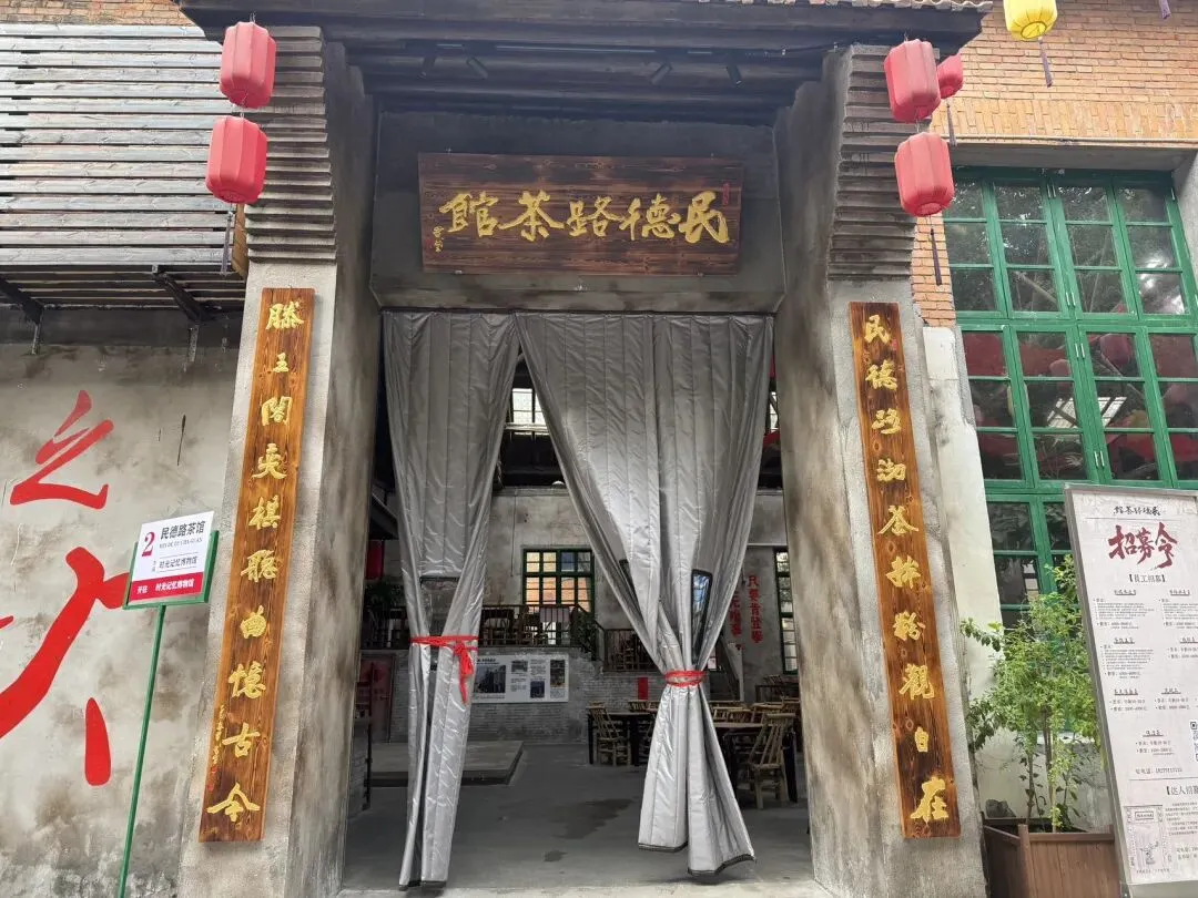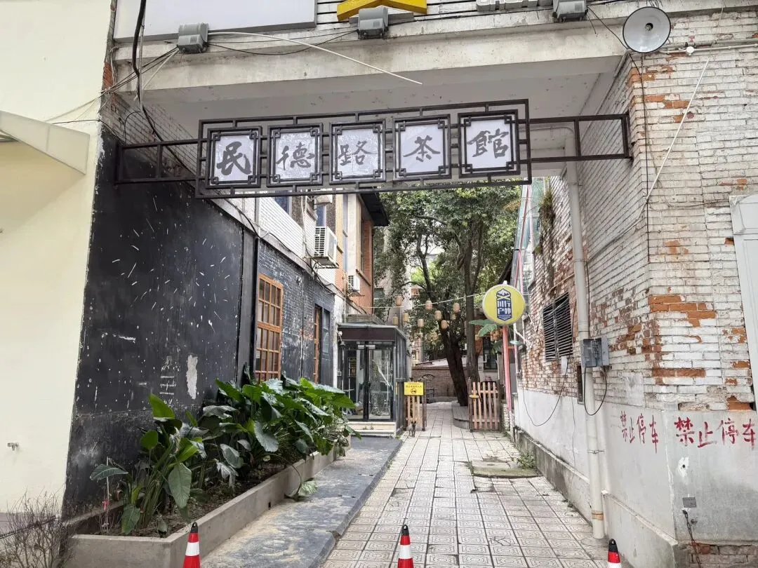 民德路茶馆在一个大院子里,整个院子的装饰都颇有八十年代气息,