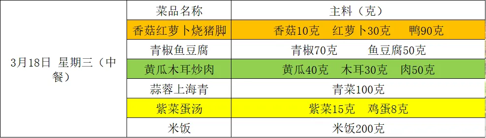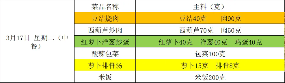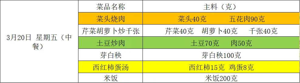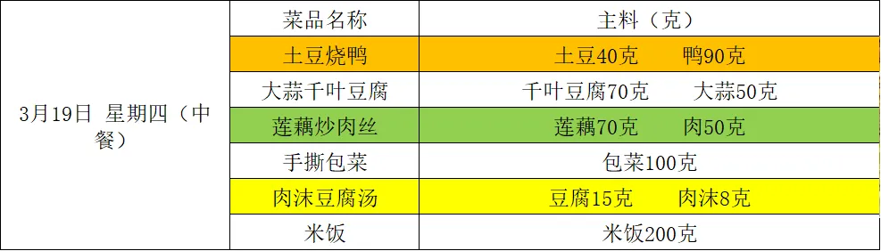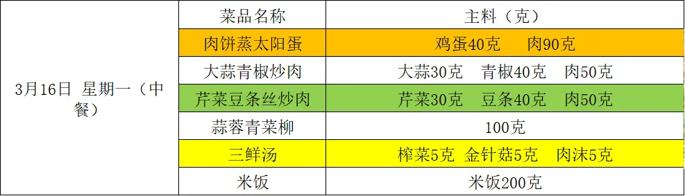 【阳光午餐】南昌二中高新校区一周食谱(3月16日-3月20日)