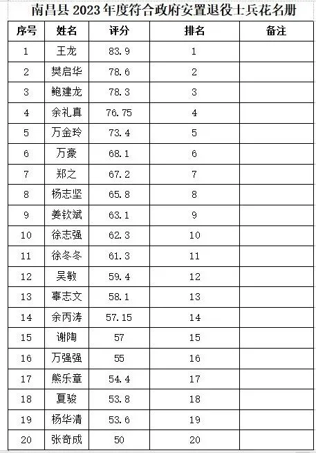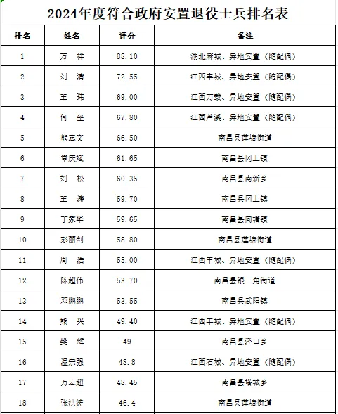 注:以下信息都是江西省南昌市南昌县退役军人事务局微信公众号官方公示信息,纯转载,未打码。