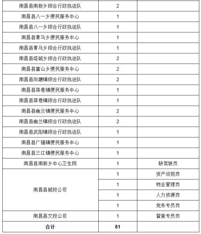 提供岗位:51 个(全额拨款事业单位46 个、国企5 个)。