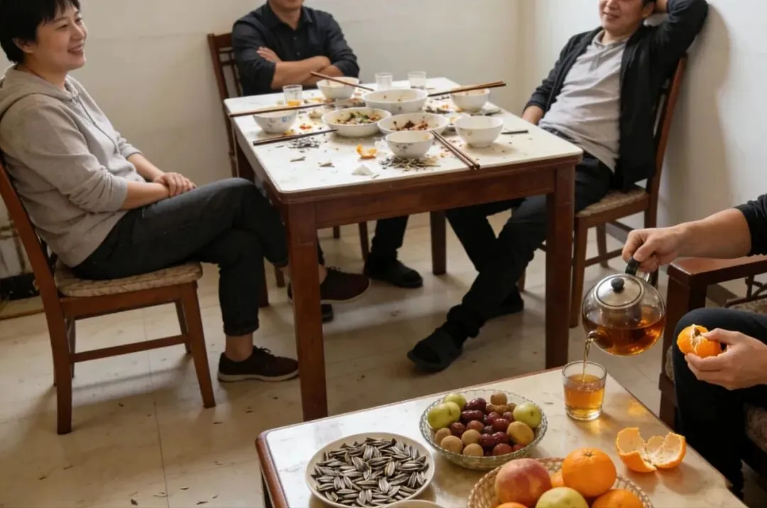 是晕碳之后,就着瓜子水果,一家人围坐在一起,半真半假地聊一些大事小事。