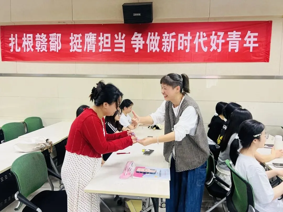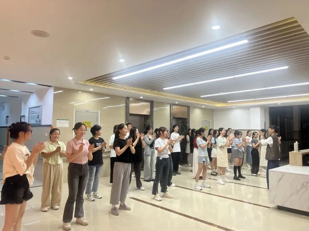 最后,蔡凤园长带领224班级全体同学进行了拍拍操、桃花朵朵开、爱的抱抱的游戏,同学们在蔡凤园长的指导下热情的参与到游戏,在欢快动感的节奏和喜悦的氛围中,同学们都玩的很开心,游戏过程中蔡园长告诉我们要如何给幼儿开展游戏和调动幼儿的兴趣,充分发挥游戏的最大价值,最终让幼儿热爱游戏。鹤琴楼不时传出同学们的欢声笑语。课后,同学们向蔡园长表达了衷心的感谢并为蔡园长准备了礼品。同学们纷纷表示此次课堂收获颇丰,励志要加强专业学习,做一名善于沟通、换位思考,并给予幼儿精心呵护的合格幼师。