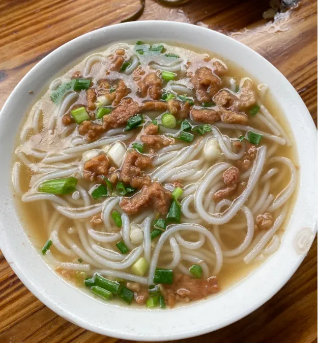 烫粉:本地稻米打成粗粉,加高汤真材实料。晨市路边小摊最扎实。