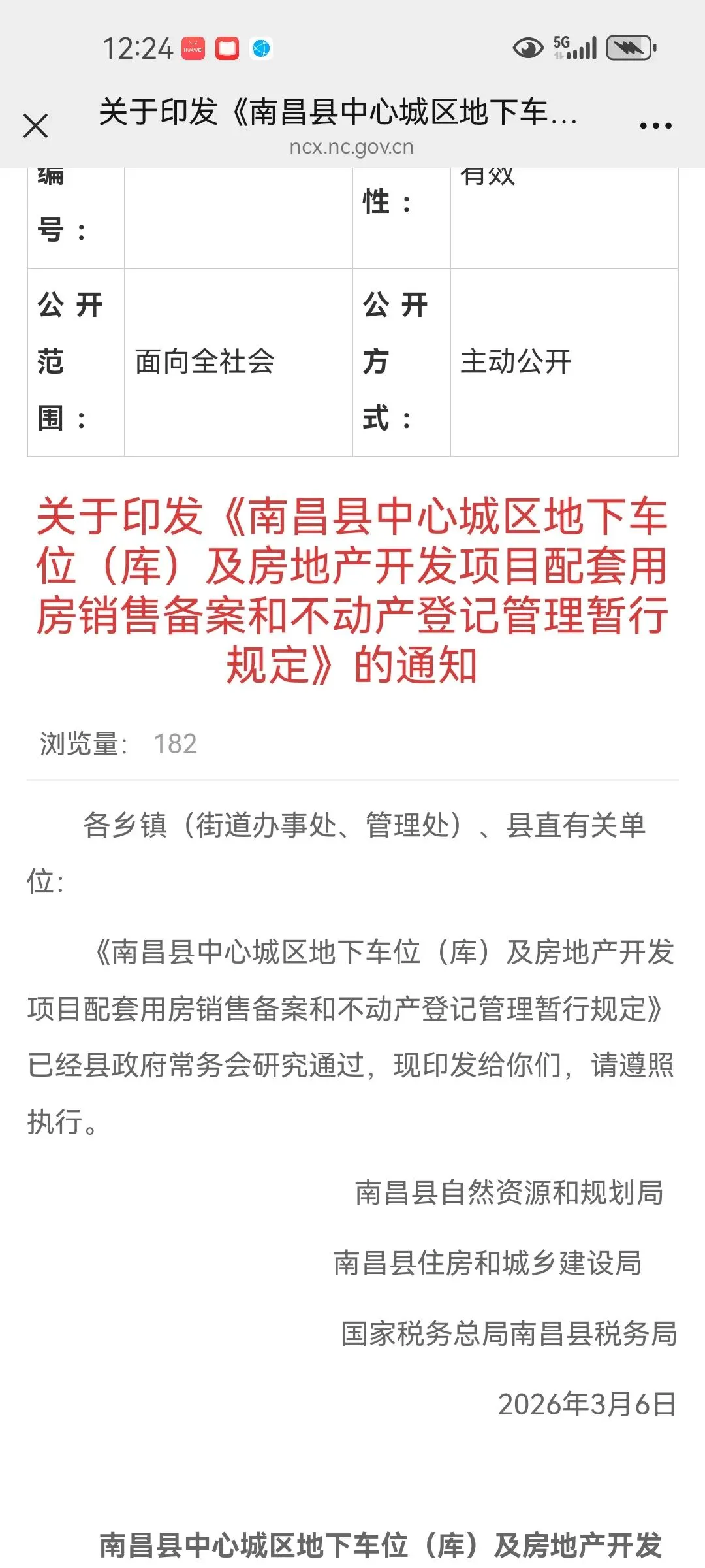 建议对南昌县自然资源和规划局、南昌县住房和城乡建设局、国家税务总局南昌县税务局联合发布的《南昌县中心城区地下车位(库)及房地产开发项目配套用房销售备案和不动产登记管理暂行规定》(南自然规划规〔2026〕1号,以下简称《暂行规定》)进行合法性审查。