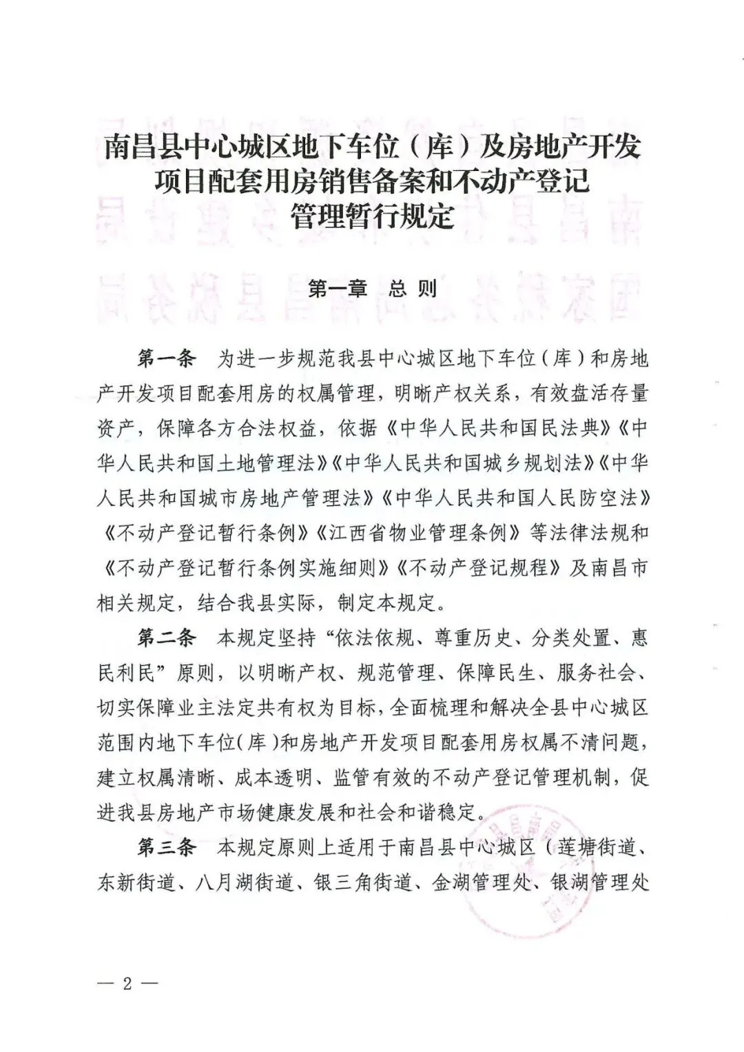 2. 《南昌县中心城区地下车位(库)及房地产开发项目配套用房销售备案和不动产登记管理暂行规定》全文