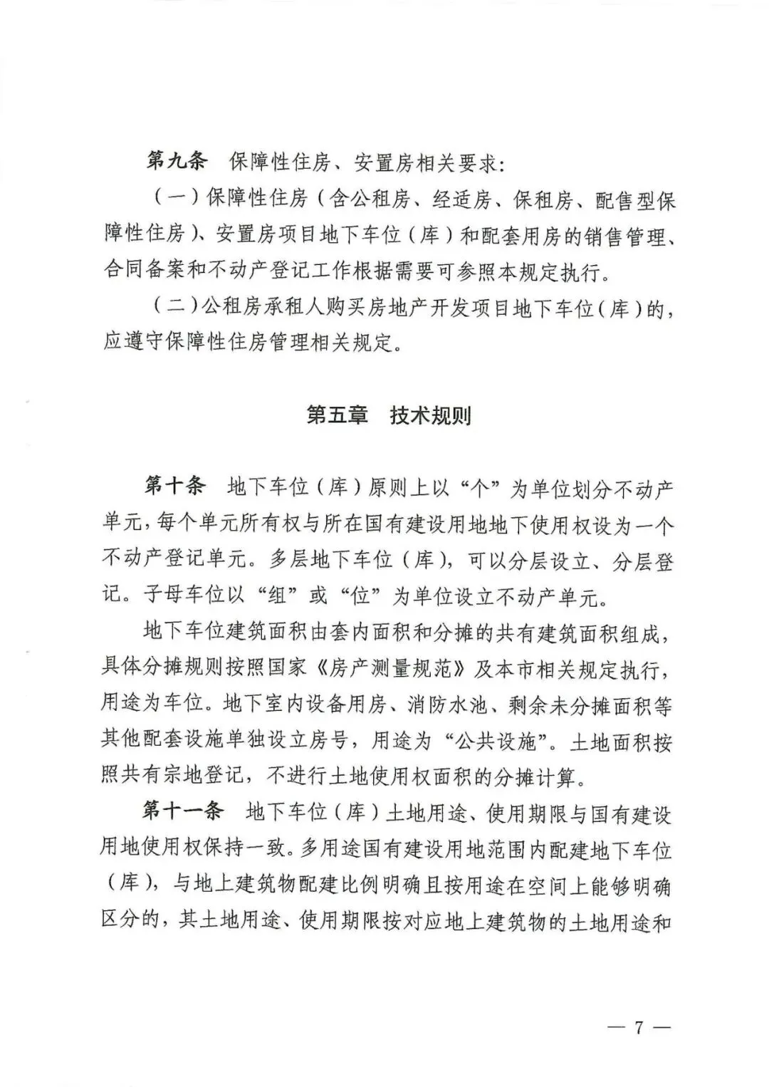 《暂行规定》第十条规定:“地下车位建筑面积由套内面积和分摊的共有建筑面积组成,具体分摊规则按照国家《房产测量规范》及本市相关规定执行,用途为车位。地下室内设备用房、消防水池、剩余未分摊面积等其他配套设施单独设立房号,用途为‘公共设施’。”