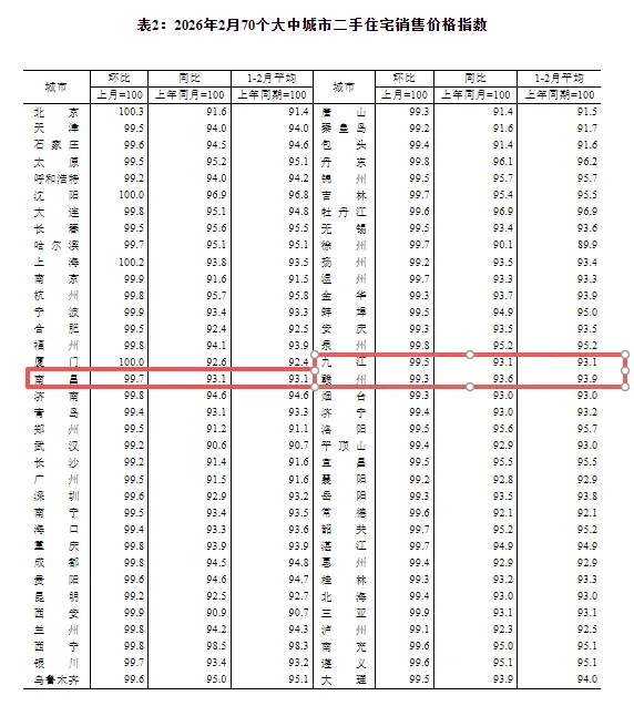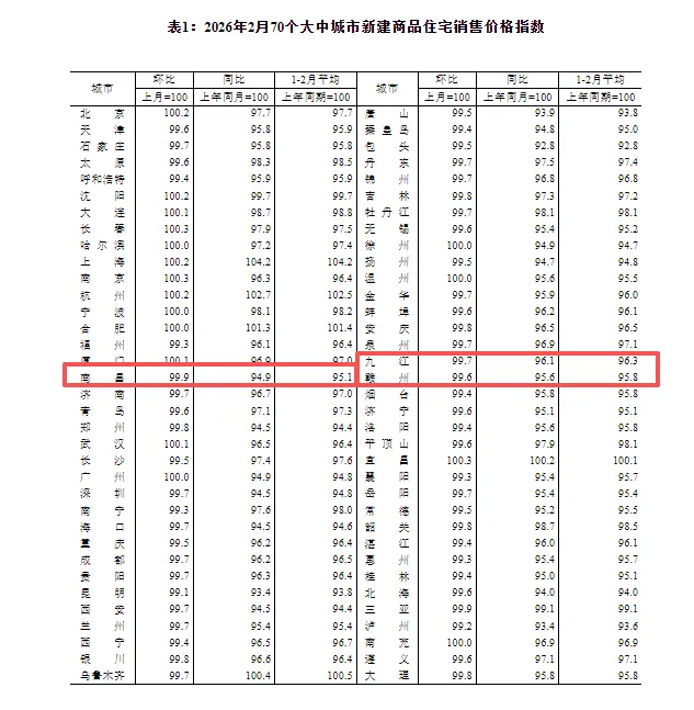 3月16日,国家统计局公布今年2月份全国70个大中城市商品住宅销售价格变动情况。江西三地新房销售价格小幅下降。