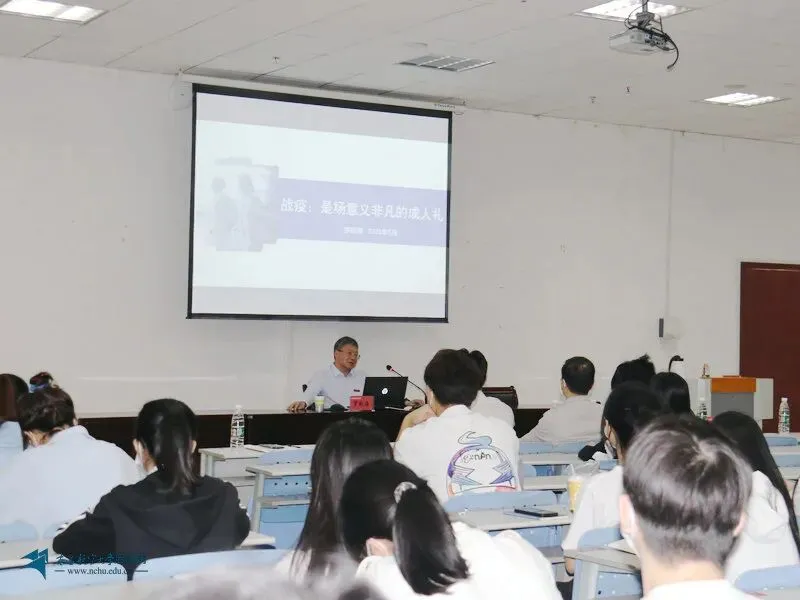 在大学生活动中心318室,罗嗣海以“战‘疫’是场意义非凡的成人礼”为主题,为联系班级的全体学生带来了一堂别开生面的思政课。课程围绕新冠病毒持续扩散和不断演变的“四个发展阶段”,分析了国外和国内、江西和南昌、全国和学校的疫情情况,深刻阐述了中国“动态清零”疫情防控政策的必要性。