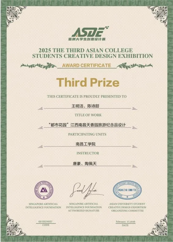 近日,2025年第三届亚洲大学生创意设计展(ASDE)获奖结果揭晓,南昌工学院艺术与传媒设计学院师生凭借扎实的专业功底与创新的设计理念,在众多参赛作品中脱颖而出,共斩获一等奖1项、二等奖2项、三等奖7项、佳作奖7项,充分展现了学院在艺术设计教育领域的卓越实力与人才培养成果。