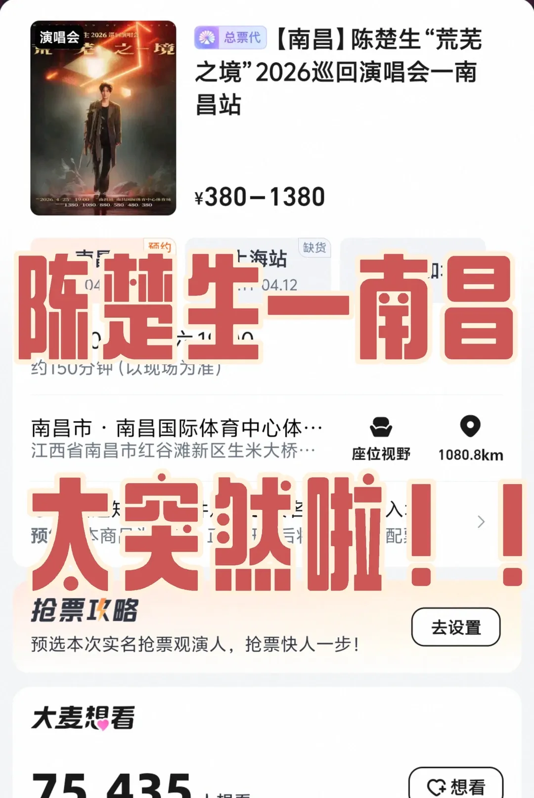 75,435人想看+超84%同类演出热度+单场限定=秒空级难度!前排蹲好,消息一到直接冲!!