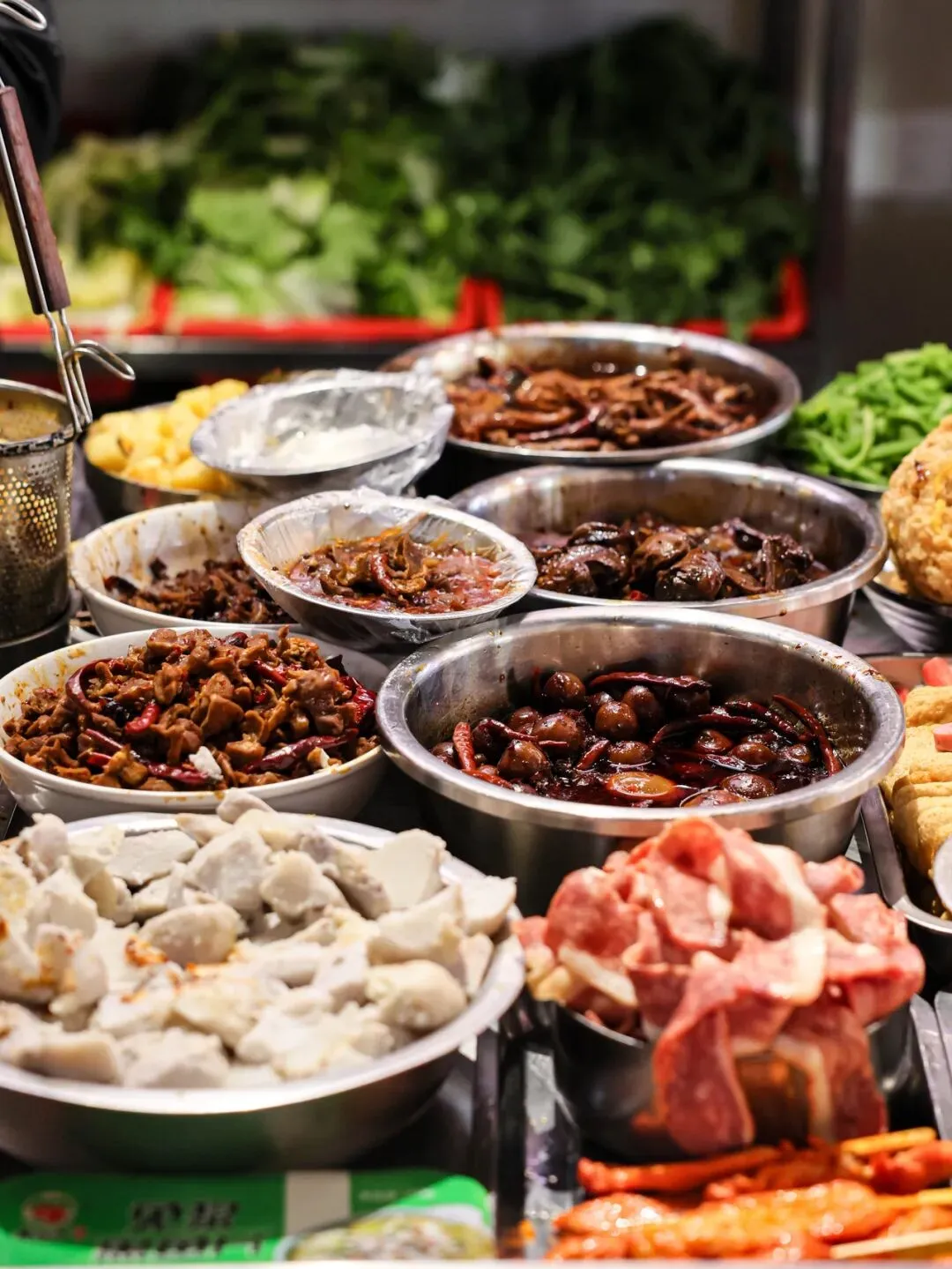 刚进店的时候其实还蛮震撼的,因为这种陈列比起一般排排坐的麻辣烫,食材展示更为集中,香气也扑面而来。